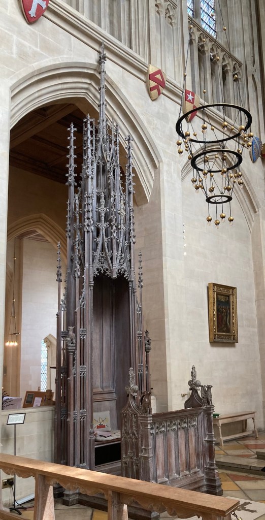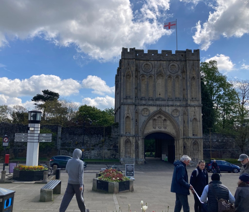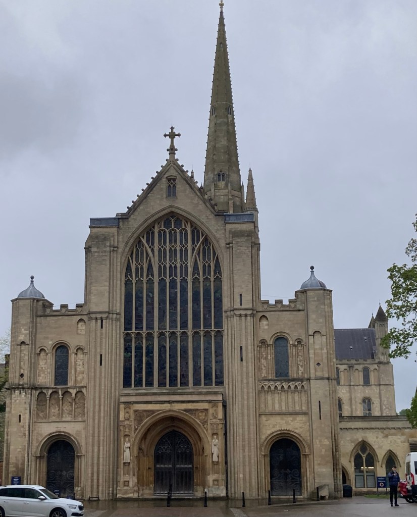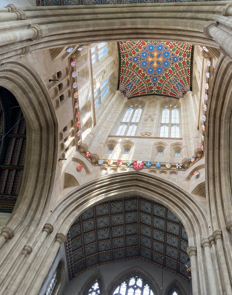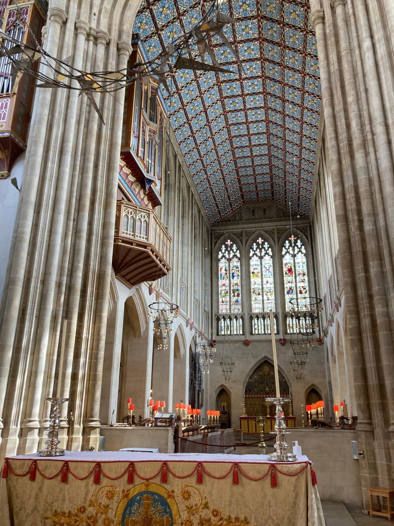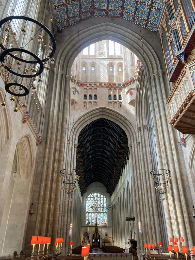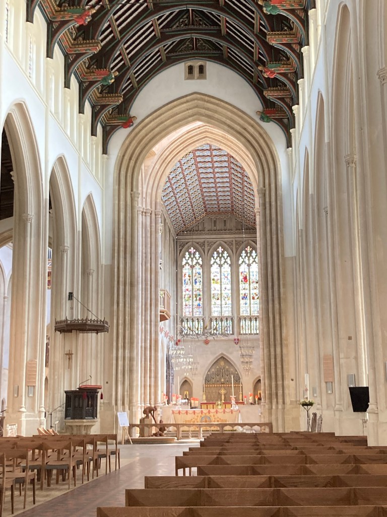 Since Bob and I saw so much of the St Edmundsbury Cathedral yesterday during our walk around the abbey grounds, we decided to go back today to get a tour of the inside of the church/now cathedral. As we learned, the building is the epitome of both old and new, although the construction succeeded in melding the two so that it looks like a cohesive whole.