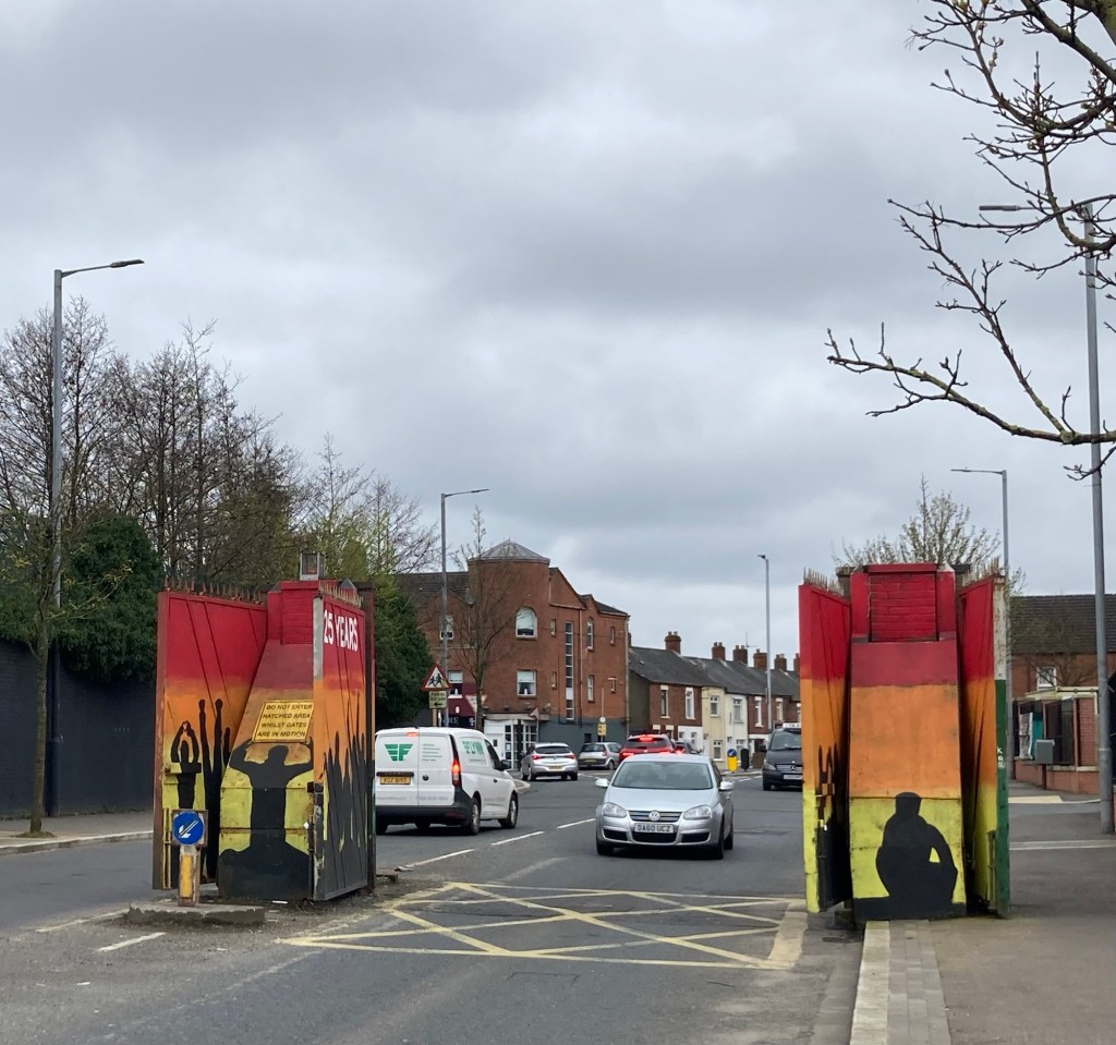 We decided to do a Black Cab Tour this afternoon. It was recommended by Rick Steve’s as well as by our taxi driver from the airport. It is a 90 minute cab tour that provides a visual and informative description of some of the happenings during “The Troubles” in Northern Ireland (or the North of Ireland as our driver prefers to refer to it.). I’m not even going to begin to try to summarize what we learned (from an admittedly Republican vs. Nationalist or Catholic vs. Protestant perspective) except to say that people have trouble living with other people, people like power, and people can do horrible things to each other. In that regard, it was a sobering tour, and while what we heard was specific to Belfast it has similarities with other conflicts at home and around the world.
