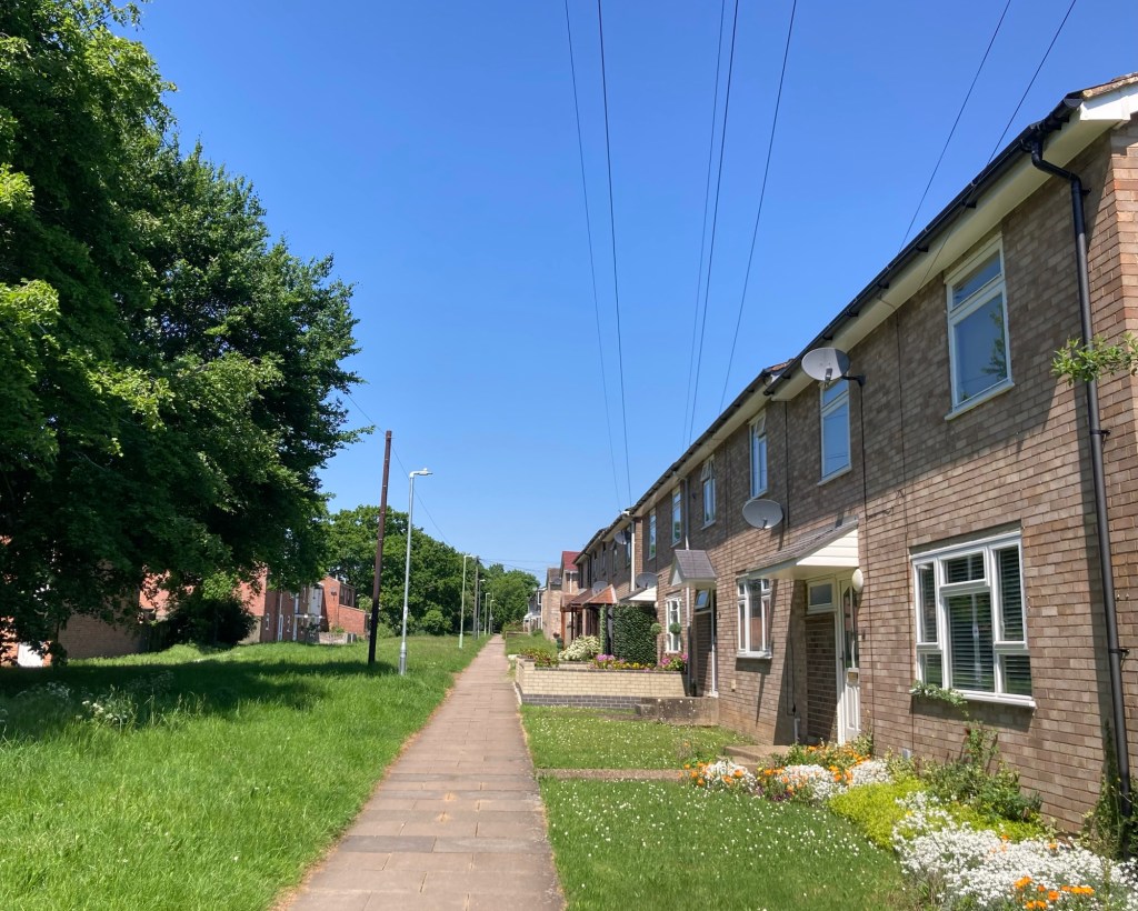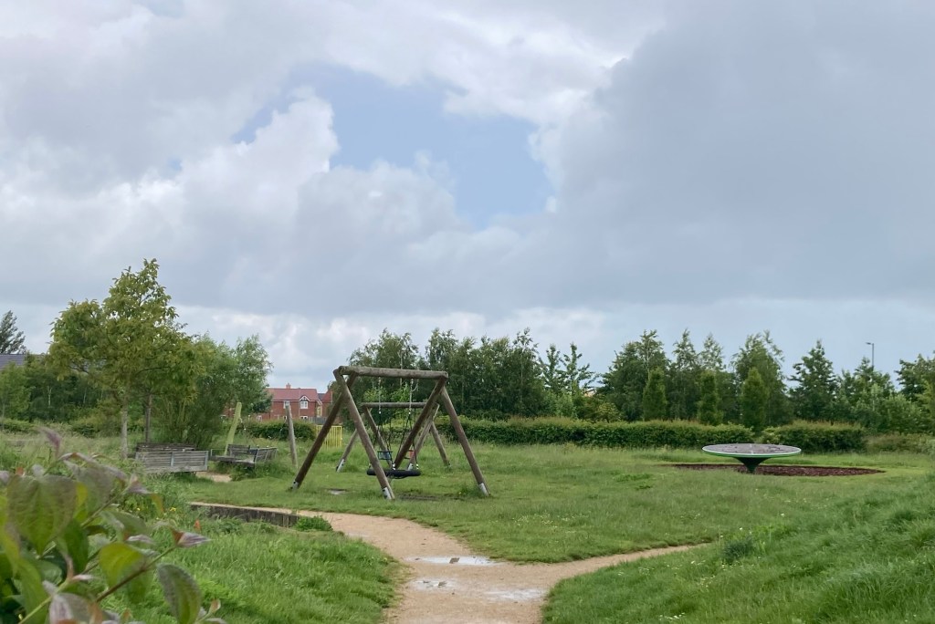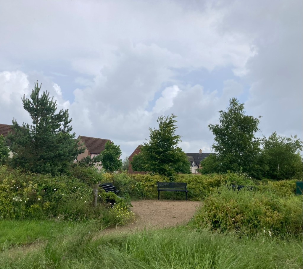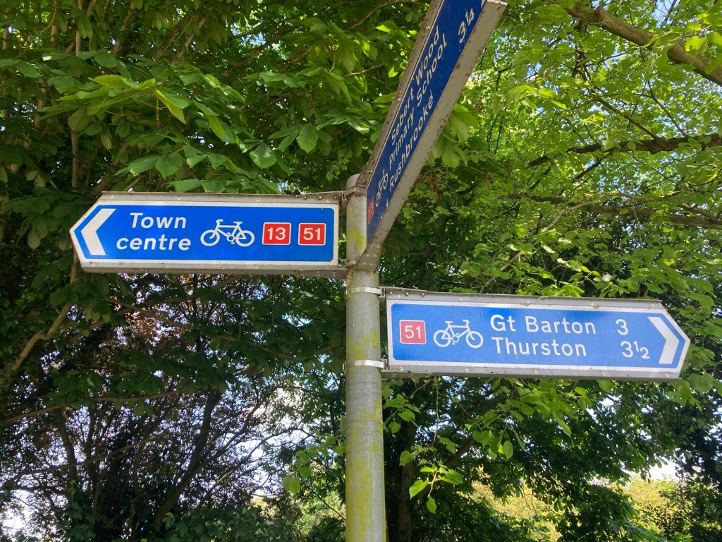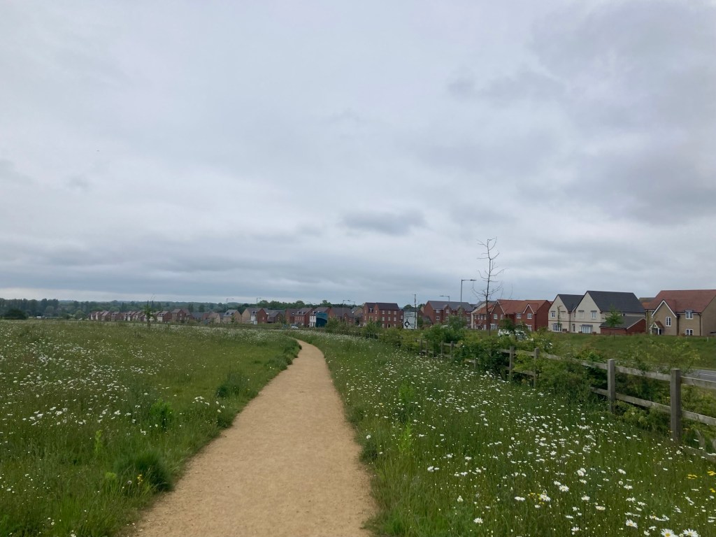 Yesterday, Bob found a route for us to walk through some neighborhoods to a short path. It gave us a good excuse to see more of Bury away from the town center. Our walk took us north of where we are staying into what appeared to be a new housing development, Marham Park, and we also found a more countryside walk to do on another day.