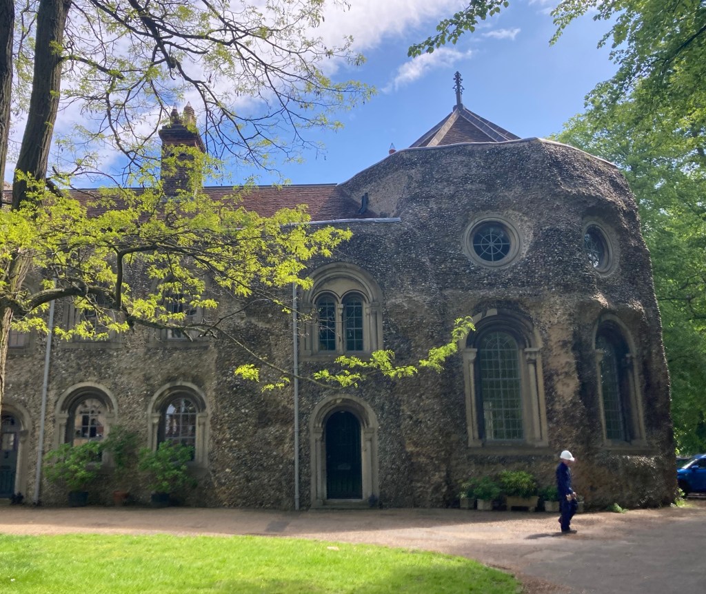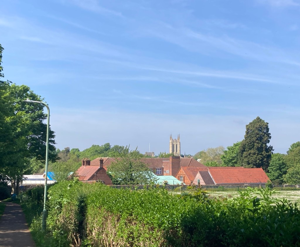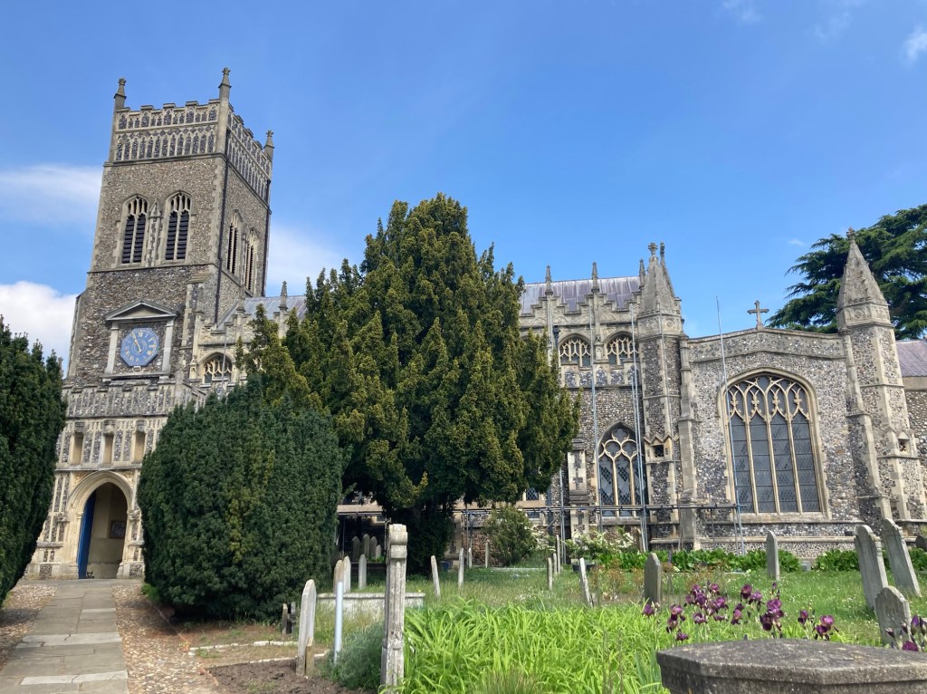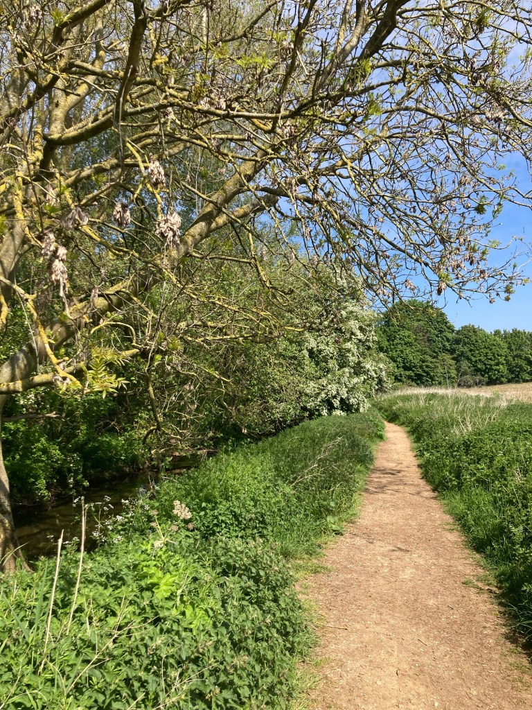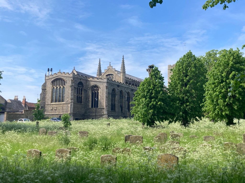 A lovely old building behind the cathedral Looking back across the cemetery towards St Mary’s ChurchNo Man’s Meadows Local Nature Reserve Crossing the River LarkThe path along the River Lark, one of 300 chalk streams in the world, of which 85% are in England