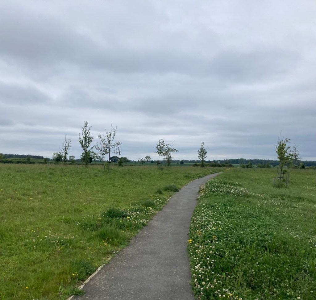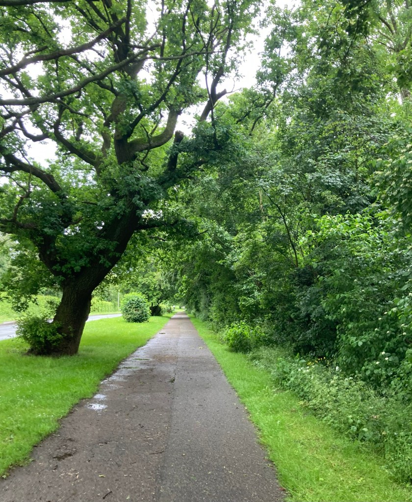 The weather app projected a rain free day or at least a few hours, so we pulled out the map app to find a place to walk to to see a bit more of Bury. We chose the Flying Fortress Park, ‘cause the name was impressive and it seemed a nice distance. We had a lovely walk and found more impressive pedestrian and bike trails even though the weather app was wrong about precipitation and there were no Flying Fortresses in the Flying Fortress Park. It wouldn’t be the only thing we would be mislead about on the walk (see last photo).