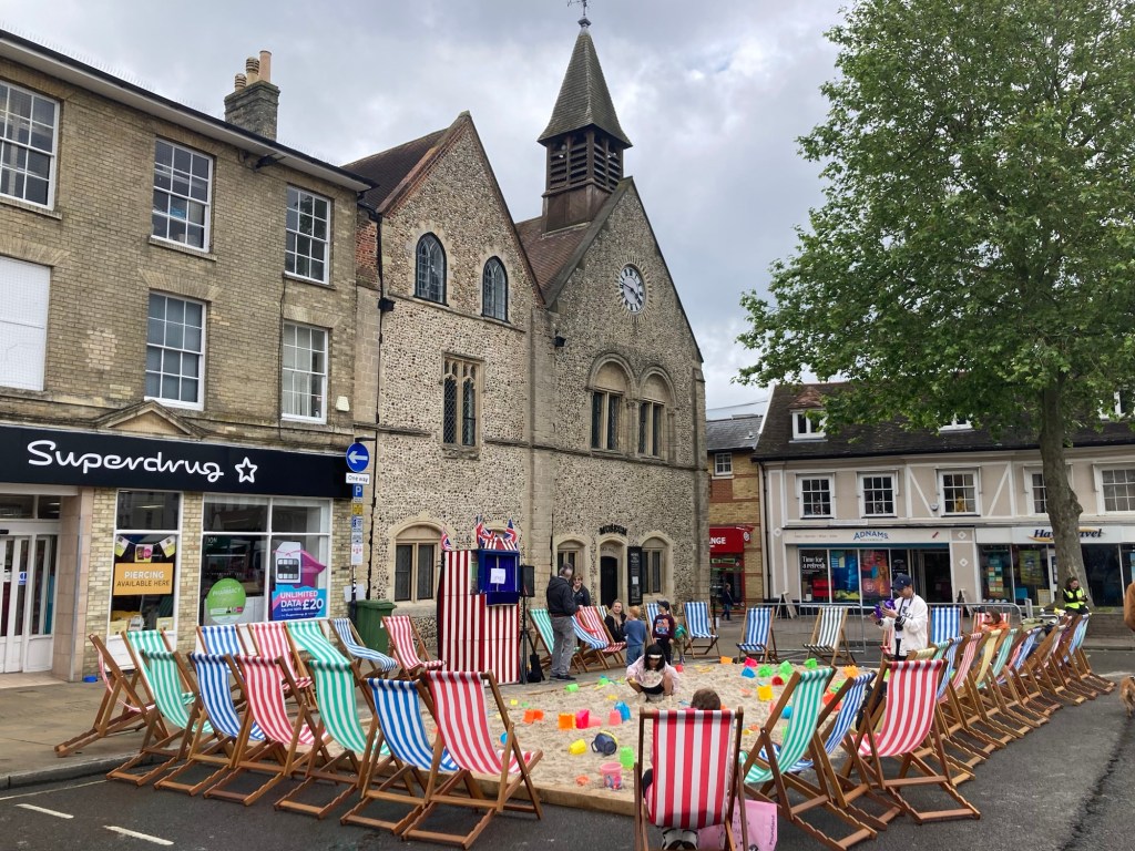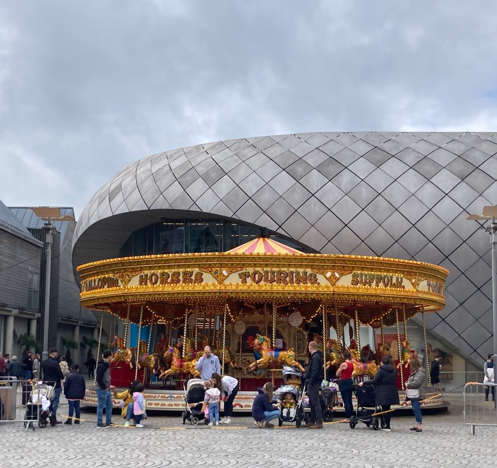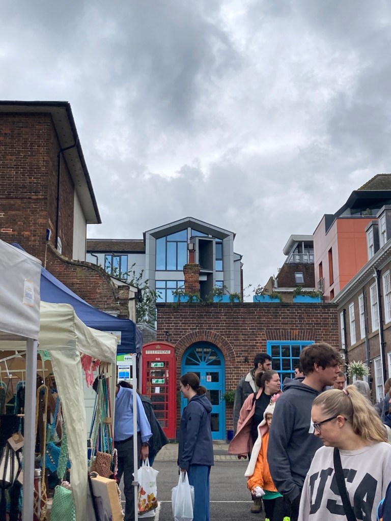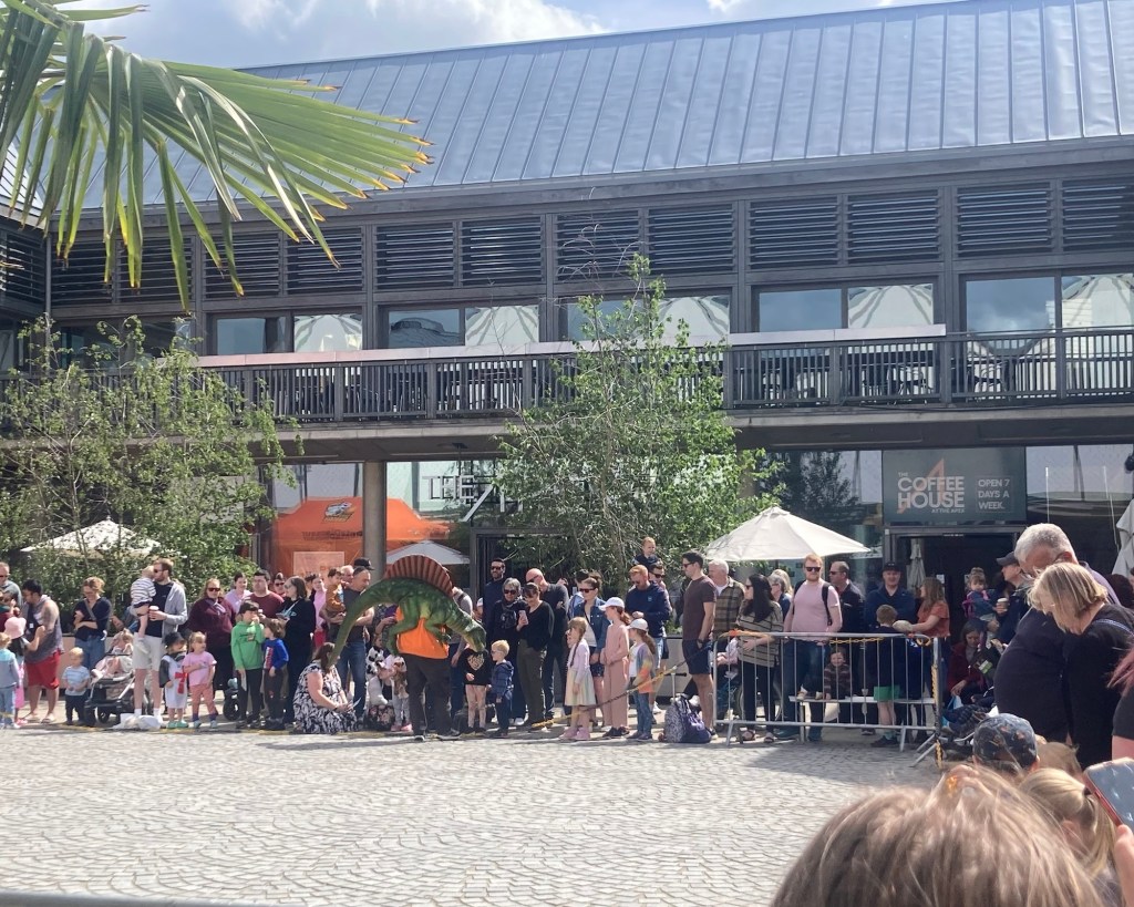 The event has activities for kids including rides, face painting, rent a dinosaur, an urban beach, and then market stalls for flowers, crafts, vintage goods, and food. It seems to have had a good turnout.