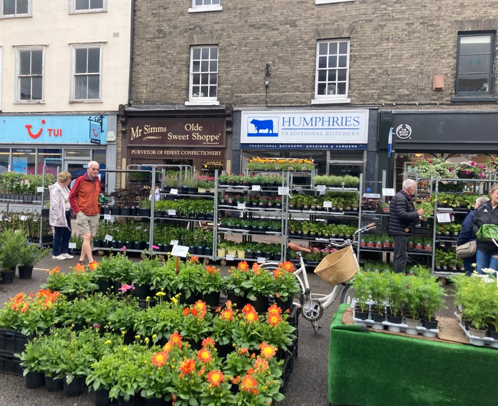 It’s a bank holiday weekend in the UK, and Bury St Edmunds is having what we assume is an annual Spring Fayre (fair for the Yanks). It has been held in the town centre/center yesterday and today from 10 am until 4 pm. Bob and I checked out all the exhibits yesterday and then went back down this morning for breakfast and to pick up a couple of items.
