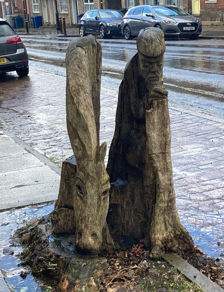 Bob and I took the train today for a quick 36 minute ride to Ipswich, the county seat of Suffolk. With a population of about 145,000, it is the largest settlement in the county. Bury St Edmunds is 3rd. Ipswich has been in the news recently here, as its football (soccer) team recently secured promotion to the Premier League.