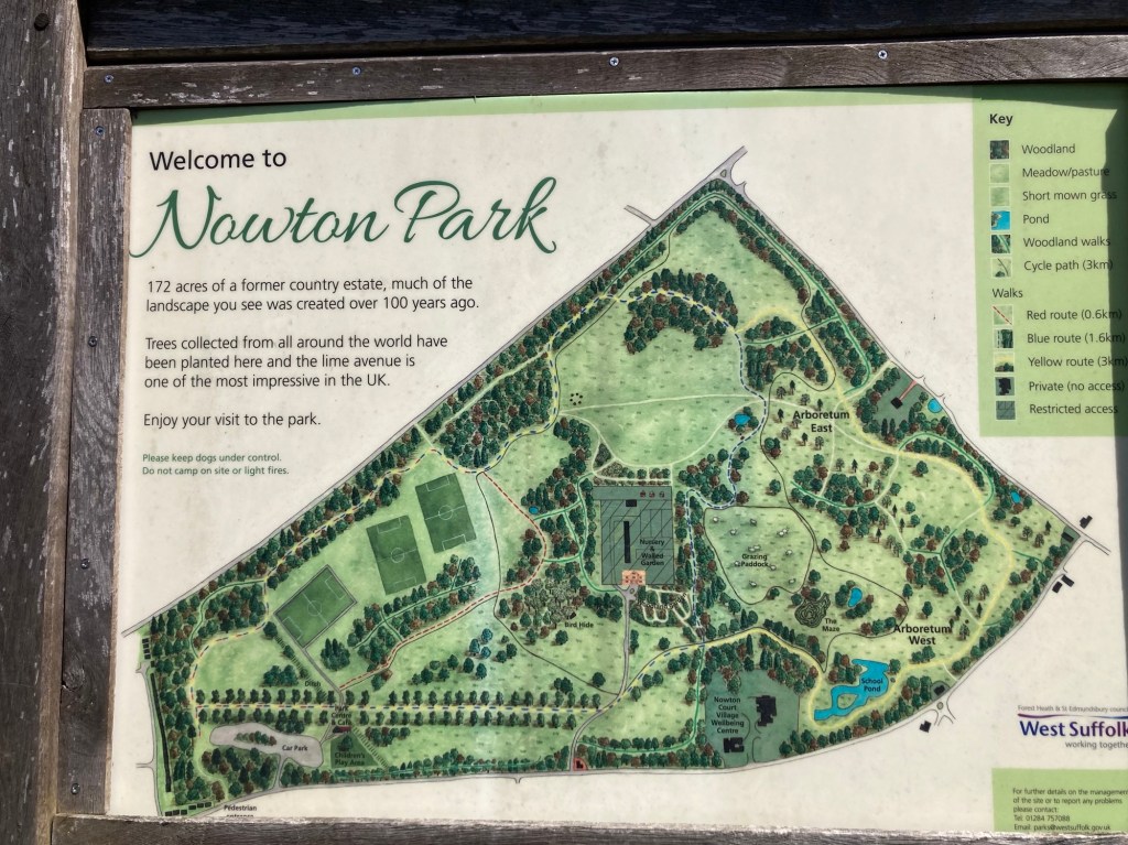 The 200 acre Nowton Park has lots to offer, including football pitches, arboretums, walking paths, a maze (closed until June), ponds, wildflower meadow, and a cafe. We walked around, although we didn’t find the way finding markers particularly helpful, so we were always guessing a bit on our actual location based on the map below.