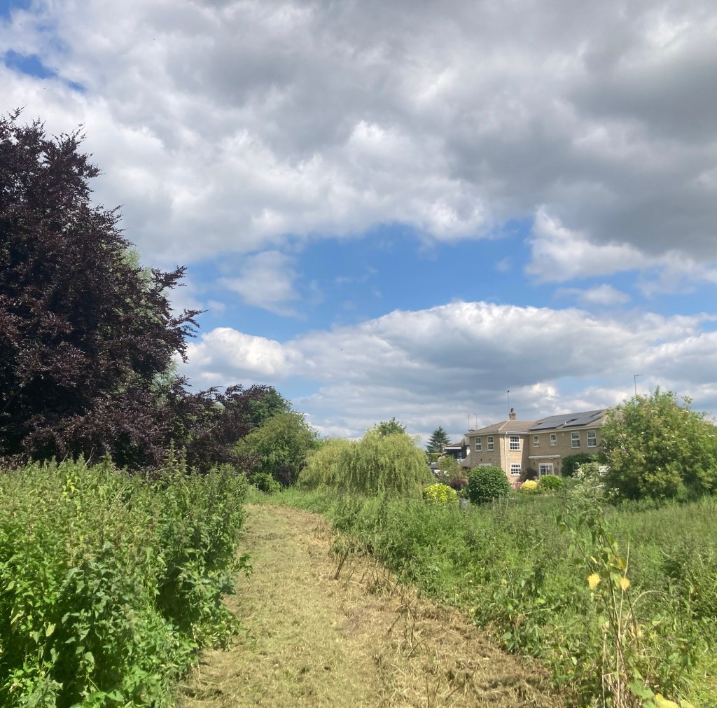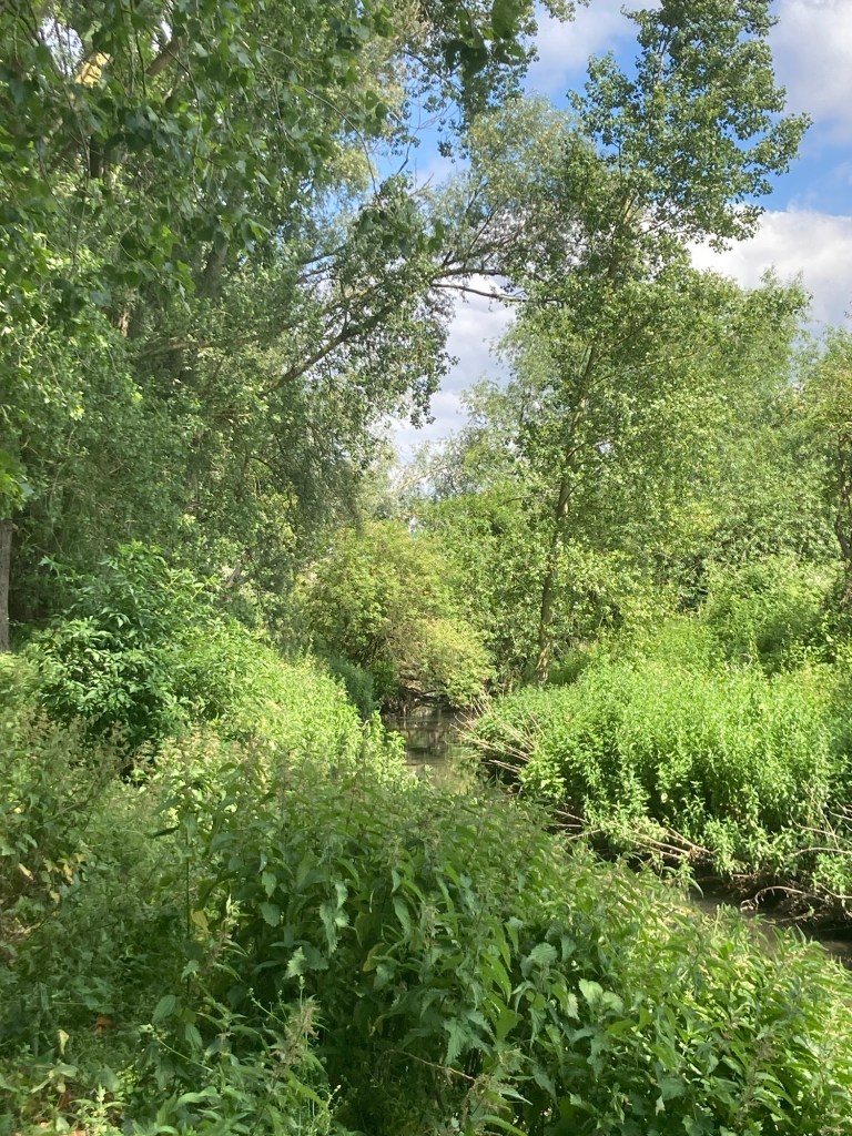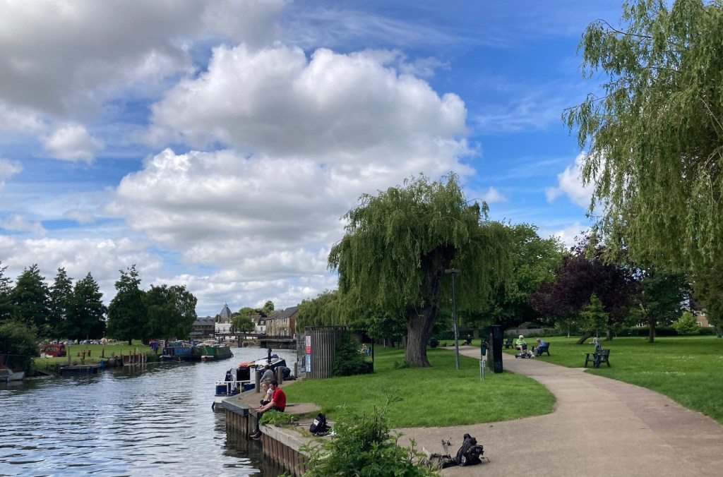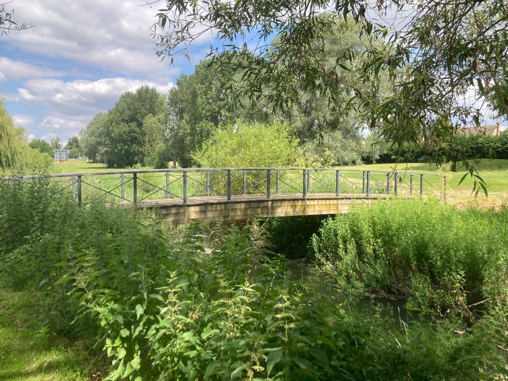 As we start our last week in Bury St Edmunds, Bob and I are still finding new paths to walk. Today, Bob and I walked a bit on the Lark Valley Path where it runs in conjunction with St Edmunds Way. We headed to the train station to catch a path that brought us through a nice neighborhood to our desired route. Once on the path, we then walked north along the River Lark past a golf course before turning around and making our way back to near the train station for a Tesco run for ingredients for a kimchi omelette for dinner tonight.
