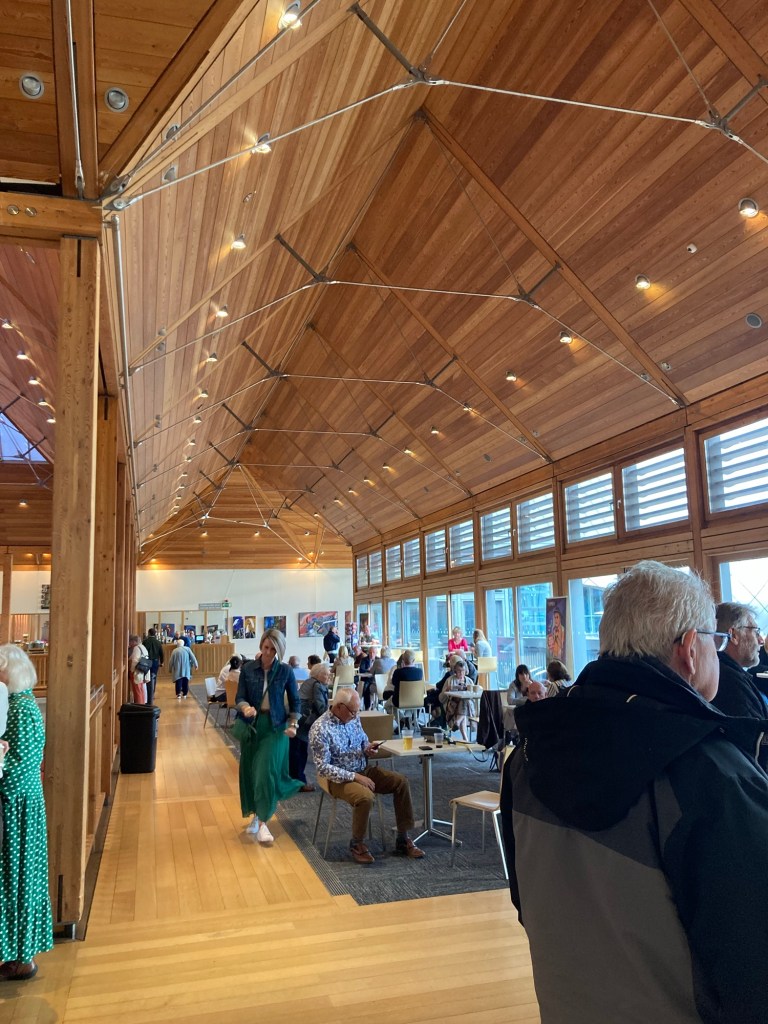 Books. Bob and I attended another book talk this week. This one was at the library, where they aren’t keen on pictures, so no photos, and was for a series of mystery books by the author Tom Mead. It was an interesting talk, although the moderator jumped right in with questions without presenting any background or introduction, but maybe that’s how these things go and we should have read the book first? Anyway, it was still an interesting talk, and we did learn a lot about the settings of the novel and some of the thinking of the author in terms of the 4 books he has now written. We have been surprised that these presentations come with free wine and/or juice and sometimes nibbles as well. I don’t know that this would be the case in the States for a book reading/discussion at a museum or library.
