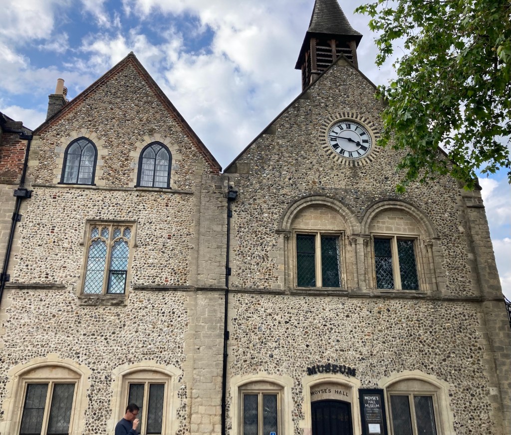 Last night, we went to the Moyse’s Hall Museum for a talk by a local historian who has written a book on the history of the Market Cross in Bury St Edmunds. The Moyse’s Hall Museum is a 12th century building in the town center that has been used as the town’s bridewell (jail), workhouse (place for poor people to work and live), and police station. It first opened as a museum in 1899. It currently contains artifacts from the town’s past and also hosts different events during the year.