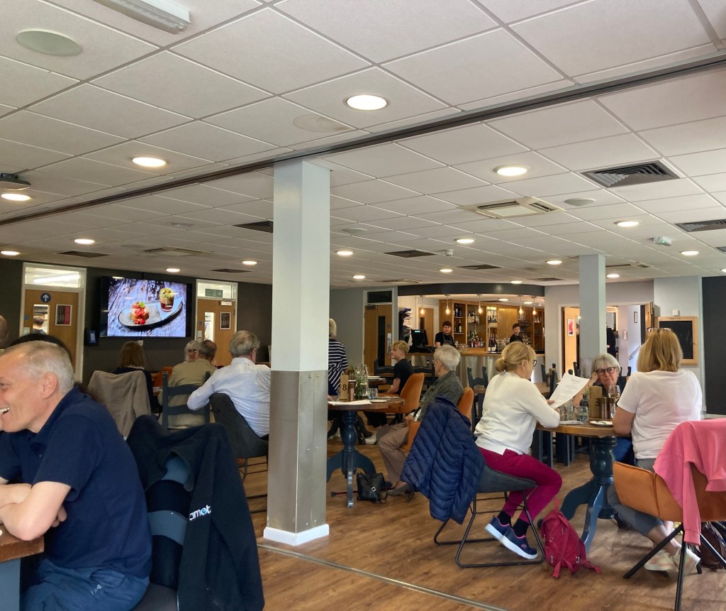 Yesterday, Bob and I finally decided to check out the cafe at the Rigsbygate Sports Center that is in our neighborhood. In fact, we can hear people playing tennis when we’re in the back garden. The cafe was pretty low key with homemade cakes and folding tables and chairs, but they had a pretty impressive menu, and the staff were very nice. While there, we also learned that there is a bar as well that opens at 6 pm, but we’re not sure what days of the week. The cafe is open from 10-4, M-F.