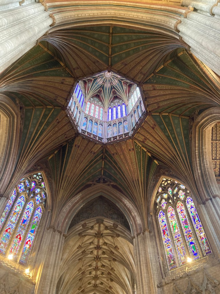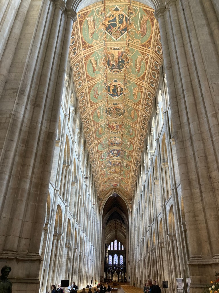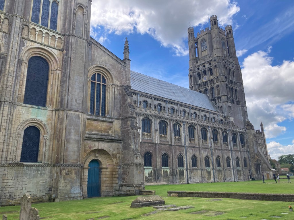 One of the best parts of this UK trip has been visiting with former homeowners/now friends. Today, our Cambridge friends, Sue and Peter, treated us to a surprise outing to Ely. While Bob and I had visited Ely before while house sitting in Cambridge, today’s visit allowed us to see new sites while catching up. It was a lovely day in lovely summer weather!