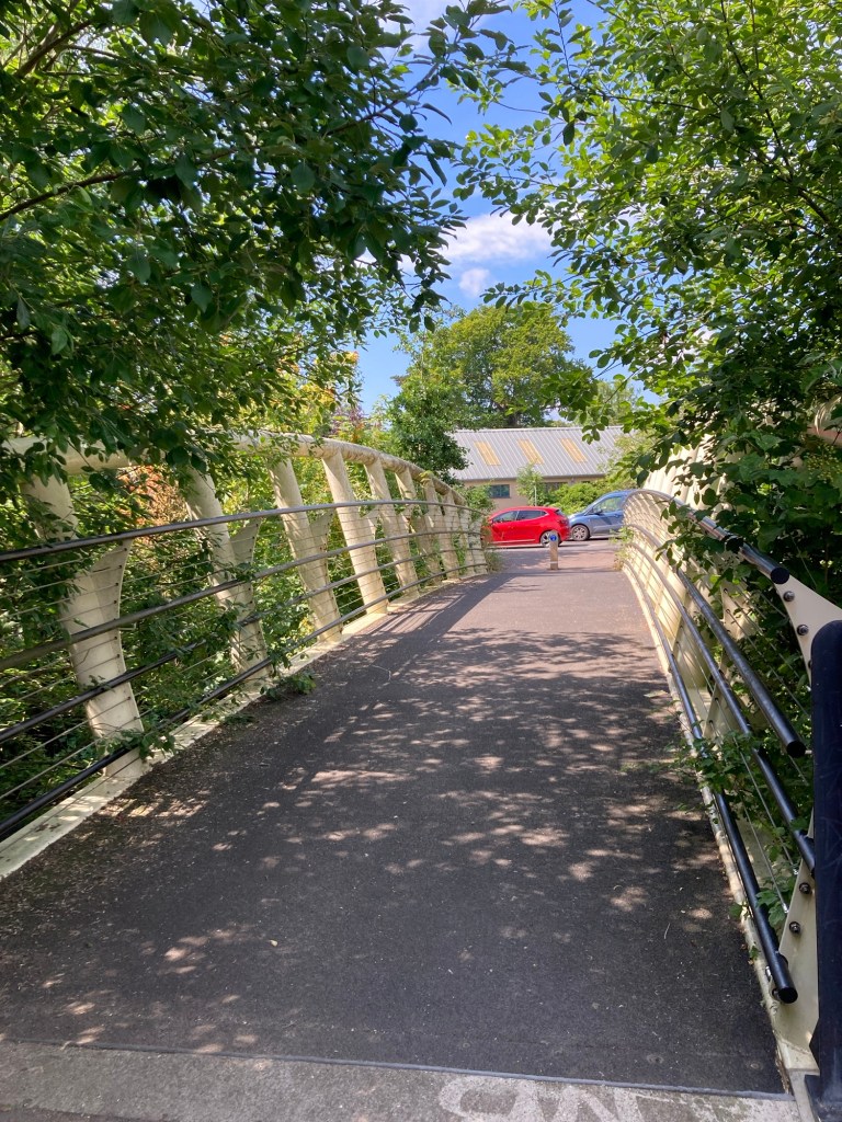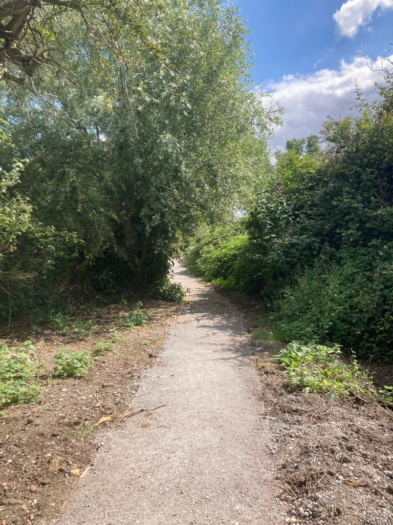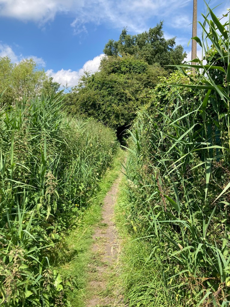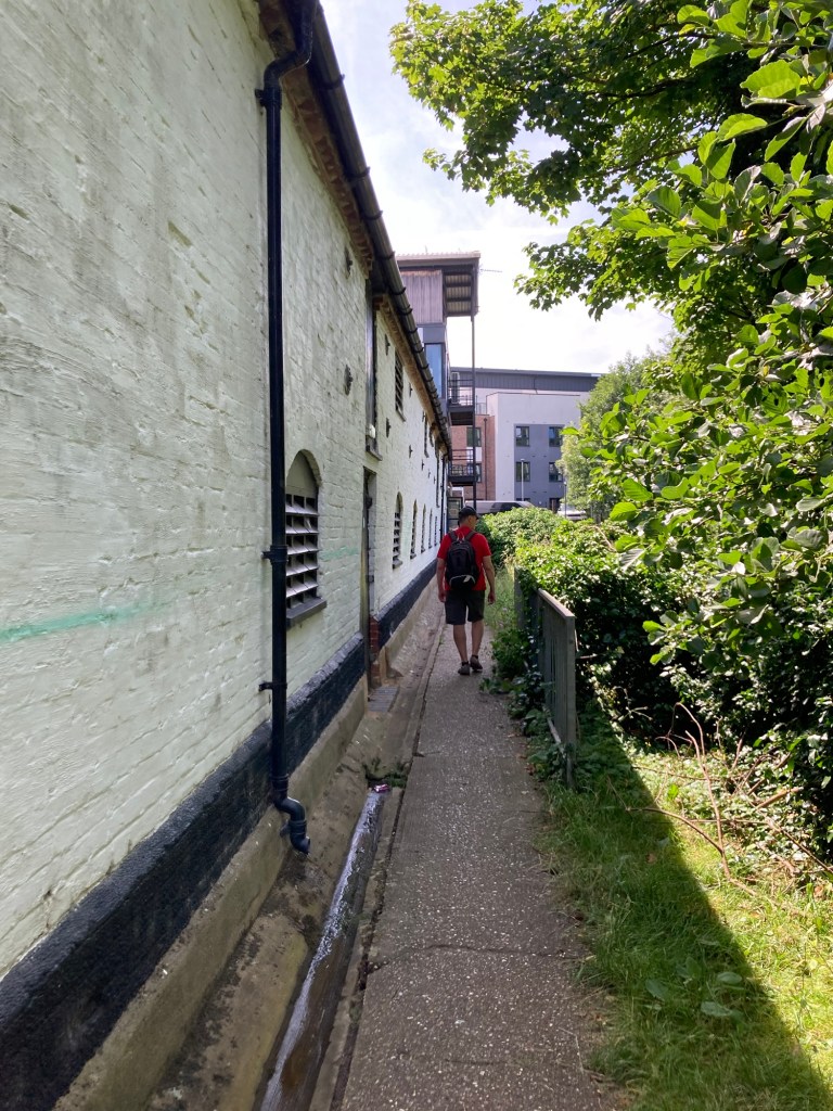 Anyhoo, back to Stowmarket. As we noted during our trip to Ipswich, there is a 17 mile trail that connects Ipswich and Stowmarket and that runs along the River Gipping. As we did in Ipswich, we started our visit to Stowmarket with a short walk along the trail. While the path was fairly clear right in town, it was very narrow and surrounded by tall grasses as we left the town center.