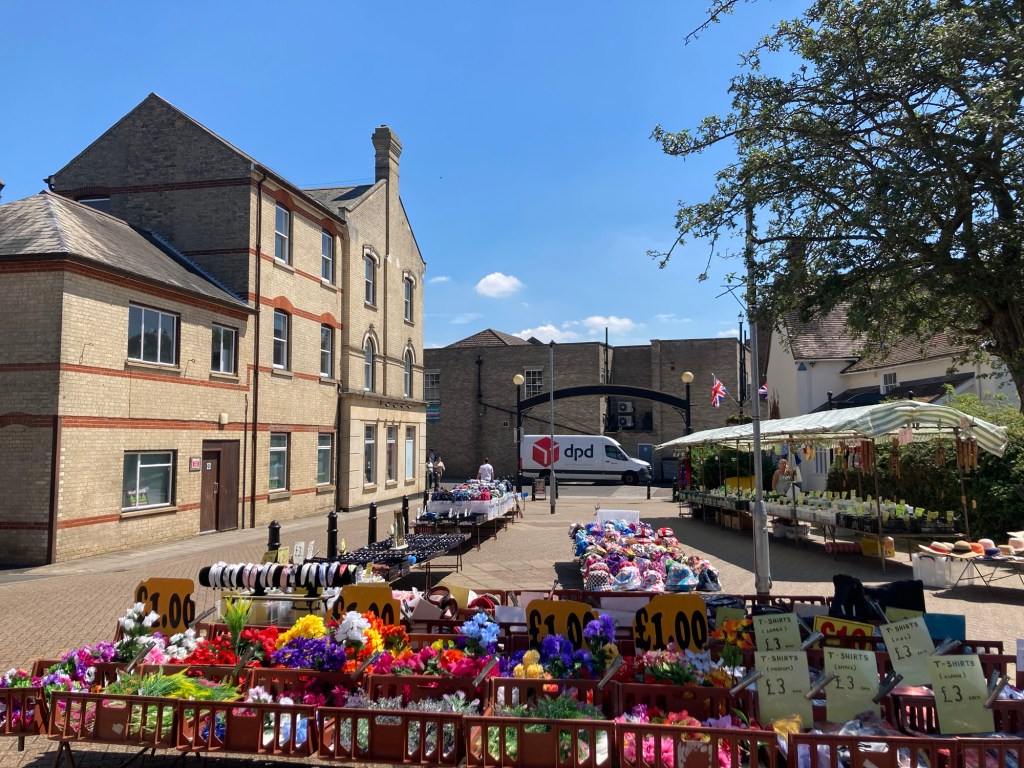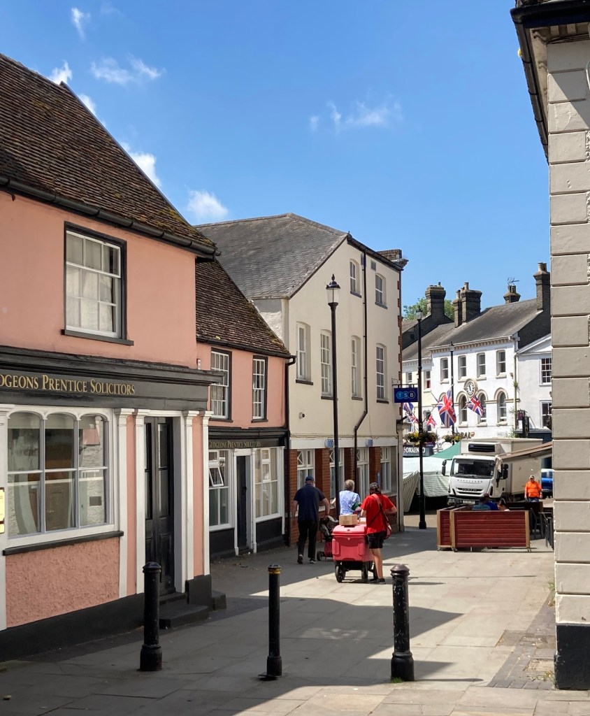 Stowmarket is a market town with a population of approximately 21,000. Unbeknownst to us it was one of their biweekly market days today, the other being Saturday. There was a fairly active high street, and we enjoyed our walk around town.