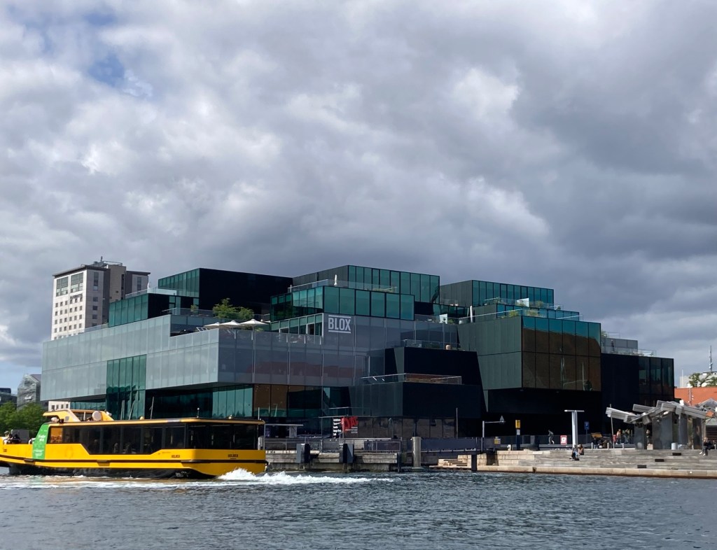 The Blox Building, which contains the Danish Architecture Center, design shop, and rooftop cafe.