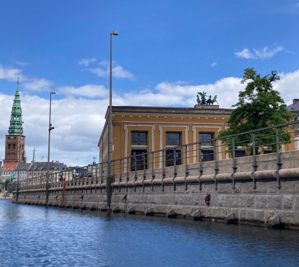 The Copenhagen waterfront is active with pedestrians and bicyclists on the 13k hiking/biking trail and people enjoying the water in kayaks, small rental boats, harbor taxis, and tourist boats like what we rode in today. During our 1 hour tour, along with the cultural and military sights, we also saw a boat that picked up trash, a lifeguard boat as well, lots of moored houseboats as well as some floating houses, and a couple of swimmers.