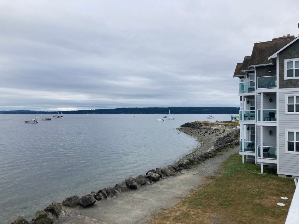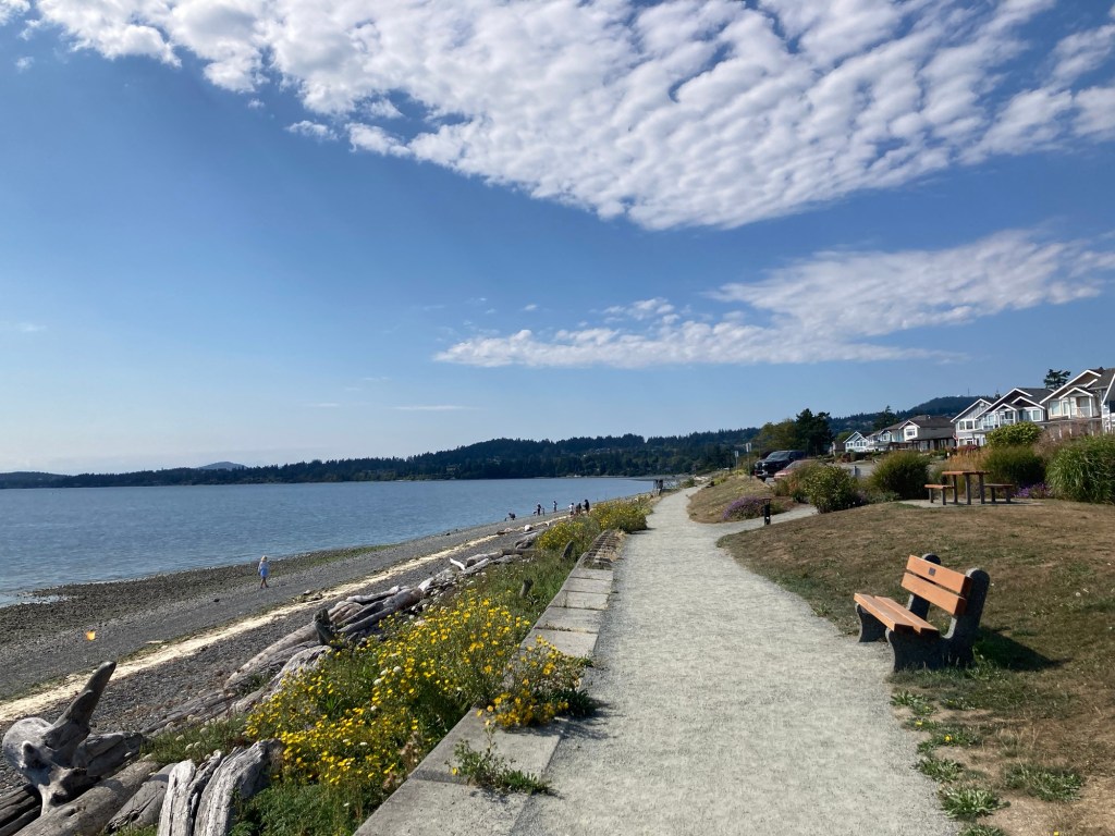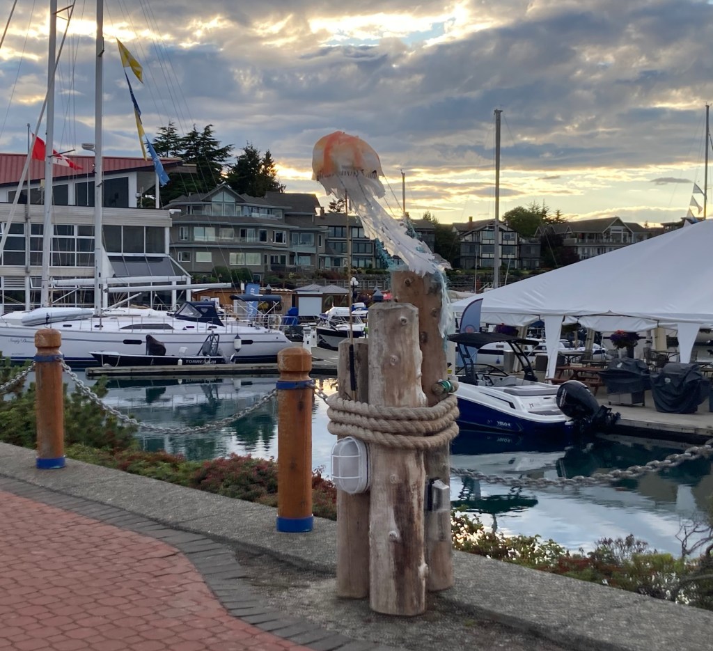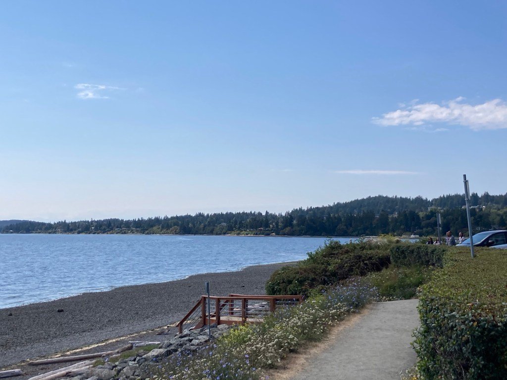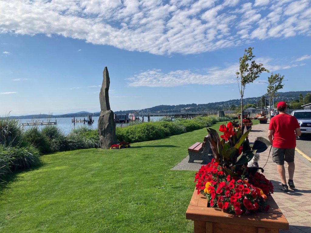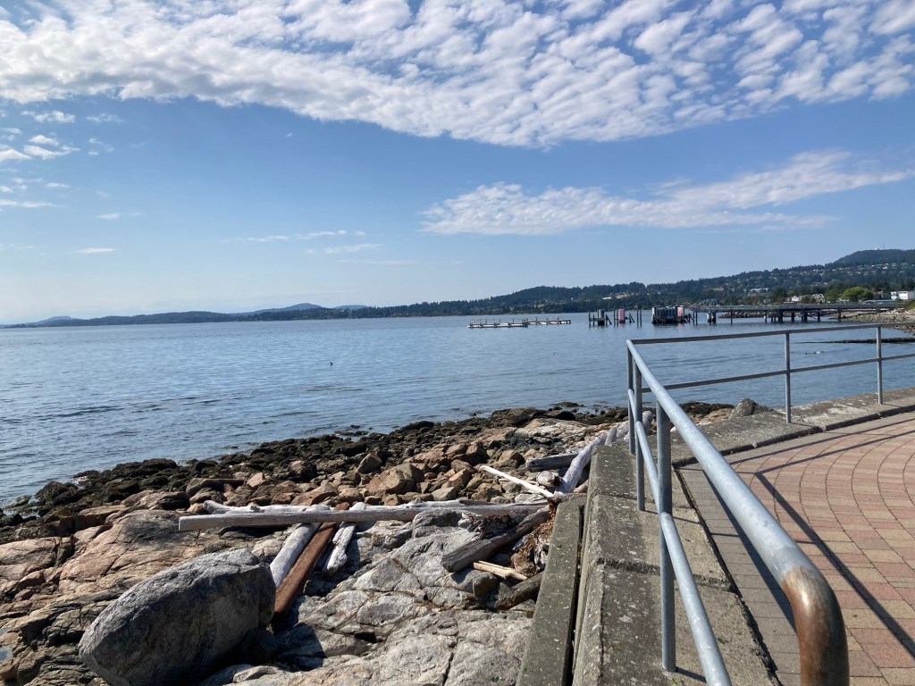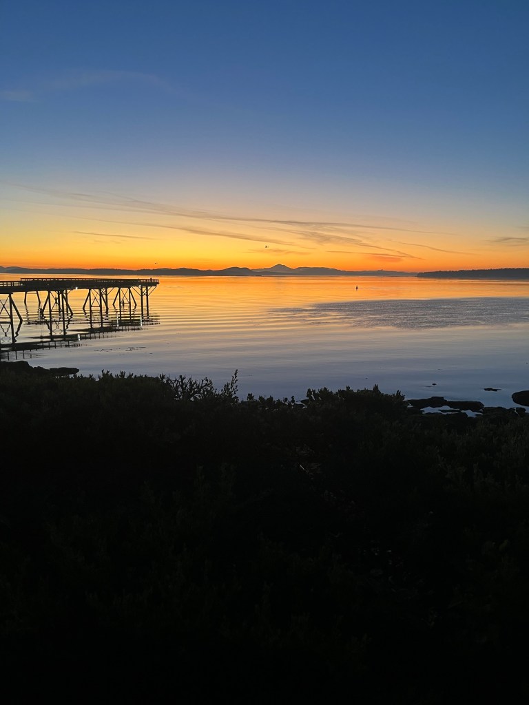 Bob and I continue to enjoy the Sidney area and are current canine charge. Our routine, as is typical for a housesit, is that I get up early for my run/ workout, and Bob does the early feeding and walk. I get up about 5 am, and Bob is out the door here between 5:30 and 6:00. Bob has been blessed with some beautiful sunrises over the Salish Sea during their early morning walks.