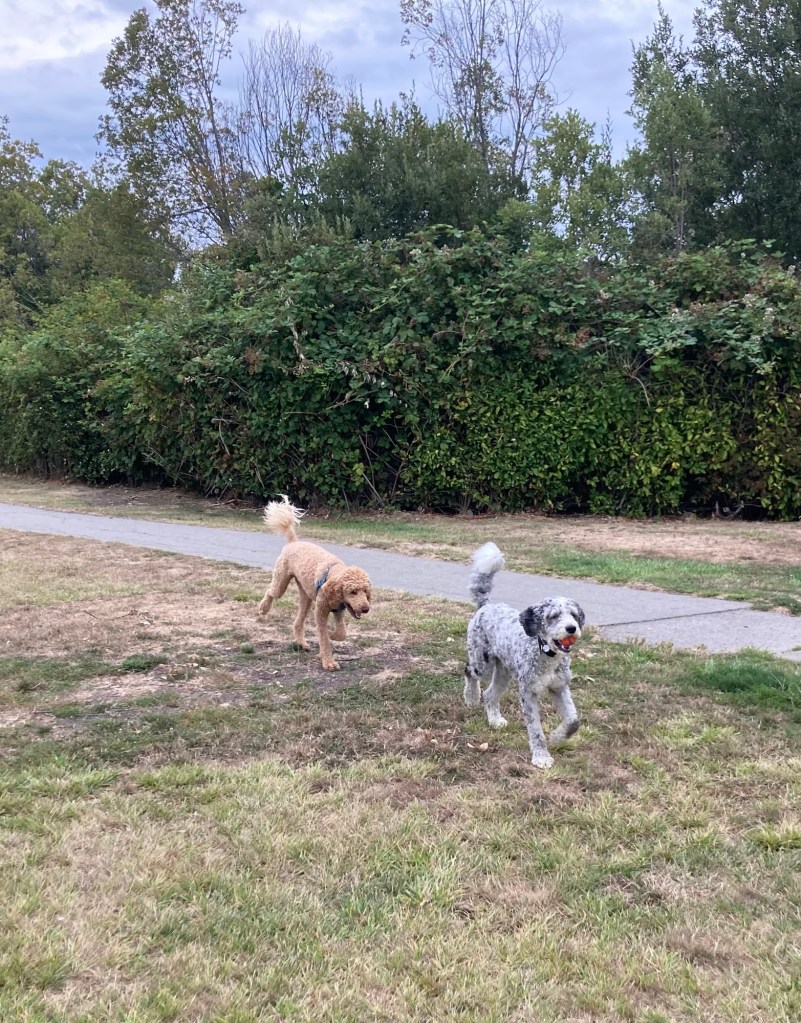 We walk Rafa 4 times a day, 2 of which are about 30 minutes, one quick one right before bed, and then a longer one, usually some time between 8 am and noon. The longer one, might be anything from a 40 minute ball catching/play session at the dog park to hour long hikes around Sidney or other island parks to longer walks on the 9k Flight Path around the airport or the 10k trail around Elk Lake.