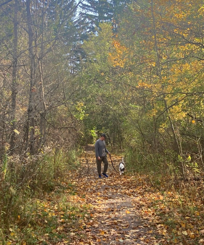 On the way back to the house, we stopped at a small community park along the Green Ribbon Trail. We had enjoyed this park last year without Jack, so forgot that the bridge in the park is not really dog friendly, so our trip today was brief but colorful.