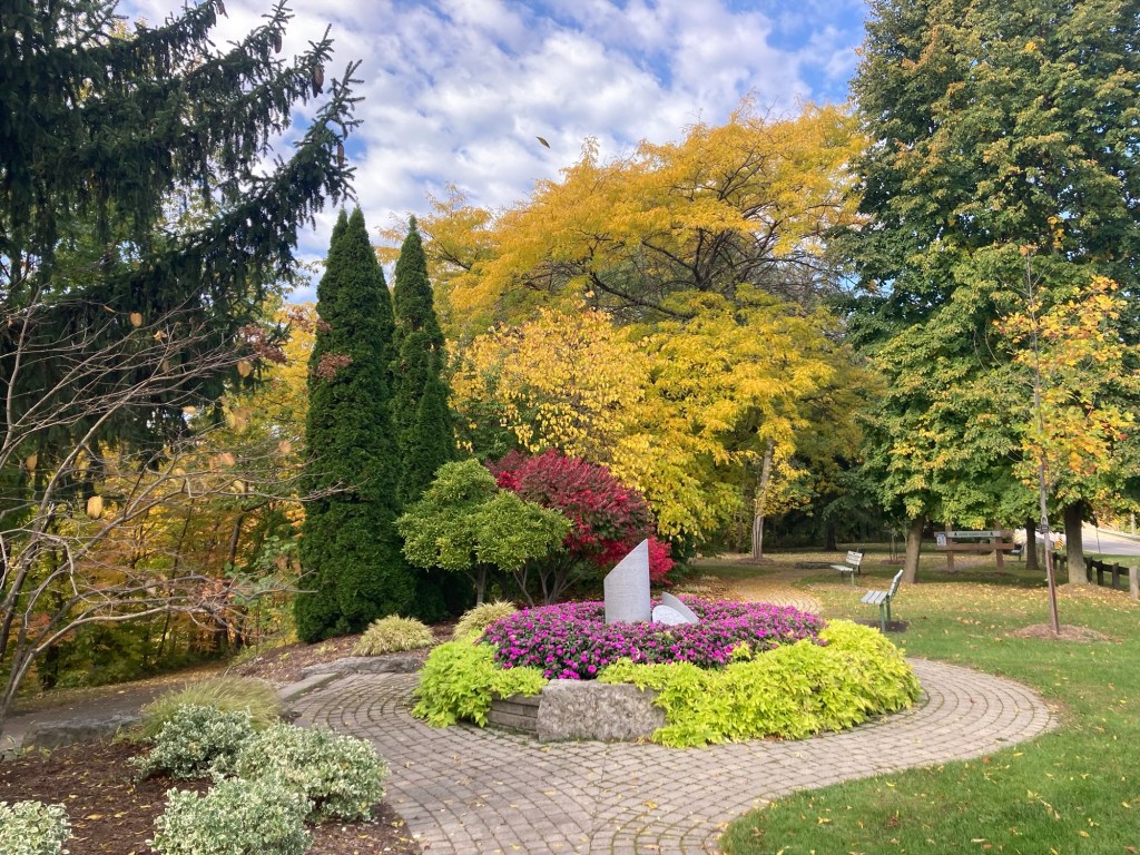 While we were in Welland, we decided to check out another local park, Chippawa Park. It is at the end of a lovely residential street. It was a great park with gardens, memorials, and a pretty pond.
