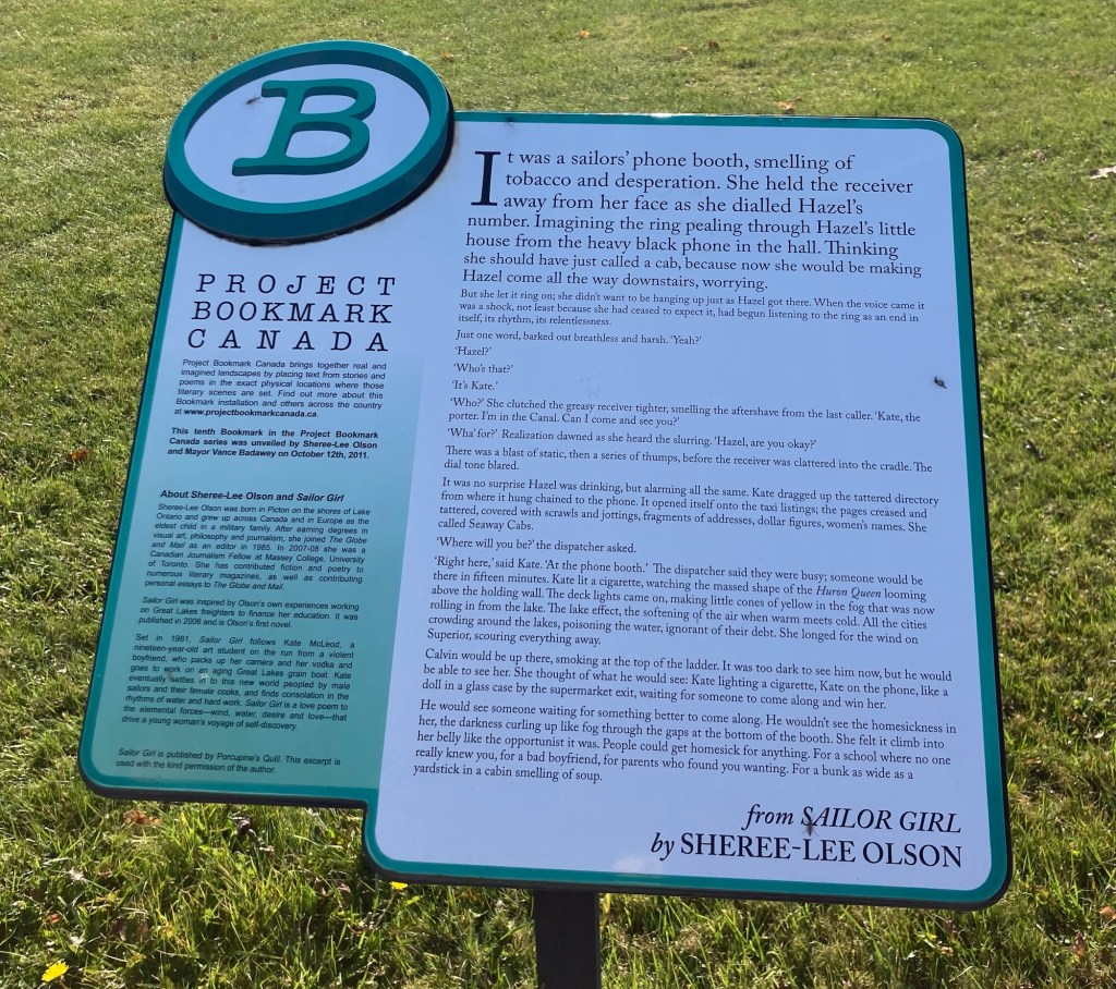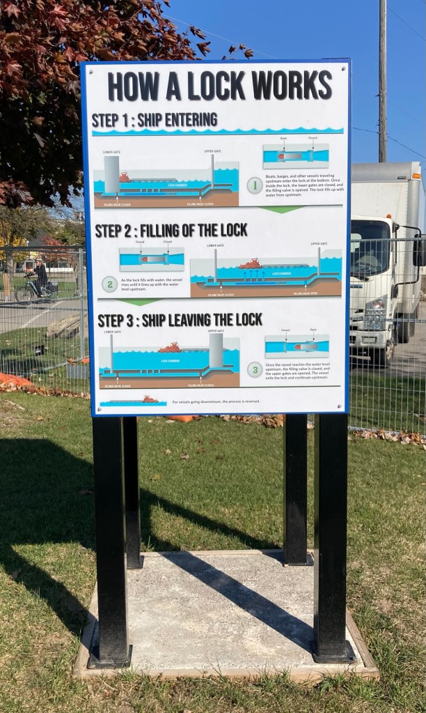 Loved this! It’s one of a number of exhibits around Canada that highlight an excerpt of a book at the very location in which the literary scene is set. A lighthouse style building in the parkJust so you remember where you are. Fun fact though, according to Wikipedia the community was originally named Gravelly Bay but was renamed for the Lt Governor of Upper Canada at the time of the opening of the Welland Canal in 1833.The trail along the Welland Canal, heading towards the north part of the island, north of the park.An old mill and signage about Derek’s Point at the end of the island.Derek’s Point is named for Derek Zavitz, a native of Port Colborne who was lost at sea at the age of 18 off the coast of Australia.The tip of the island formed by two branches of the canal coming together. It is decorated to look like the prow of a ship.Coming back towards the parkHelpful signage about locksAn appropriate (though currently waterless) fountain in the parkLooking towards the lock from the fountainA somber reminder that building and replacing canals is no joke.