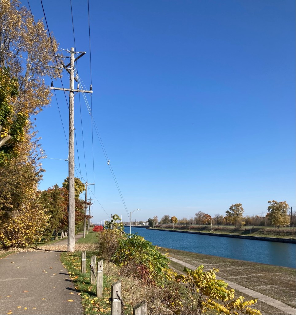 In our continuing quest to see various parts of the impressive 25 mile Welland Canal Trail, Bob, Jack, and I ventured to the town of Welland today for another lovely walkabout. The temps have cooled considerably. It was a brisk 38 degrees F this morning when we got up, so the walk both looked and felt like fall.