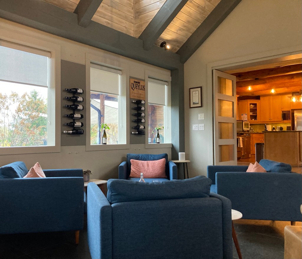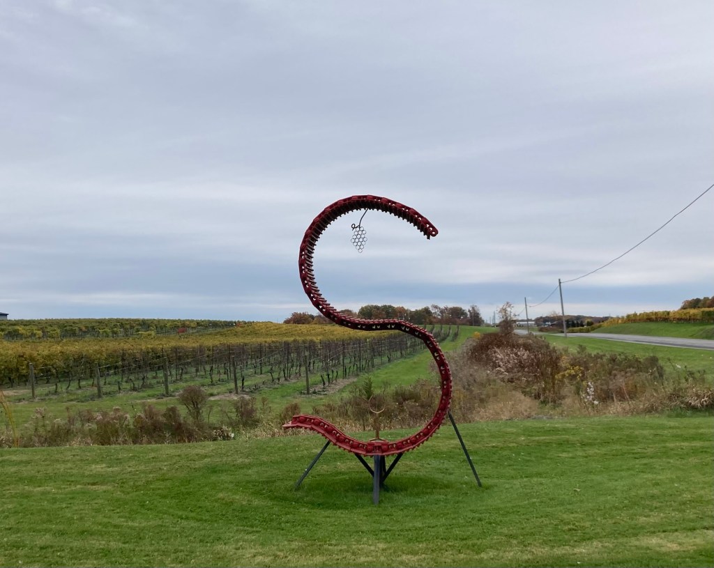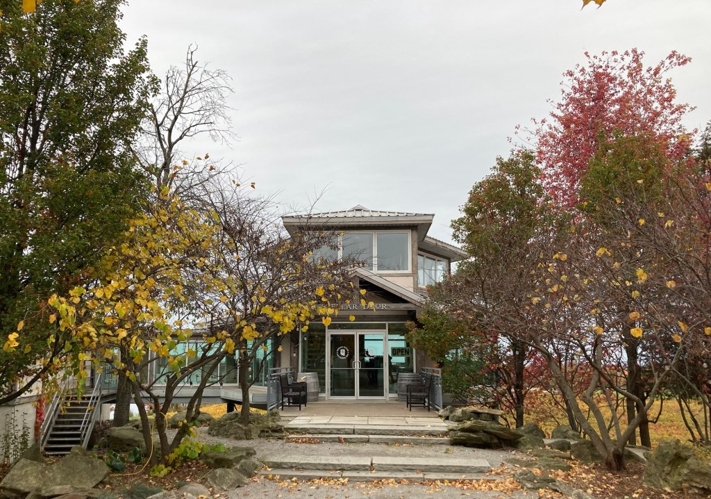 Finally, we decided that we’d have a glass of wine at our last stop, which was Domaine Queylus. This winery focuses on a select number of grapes — mostly Pinot noir, Chardonnay, Cabernet franc, and merlot. We tried a glass of the Cabernet franc and cab franc blend with merlot. The host was very nice and gave us a number of recommendations for other wineries and restaurants to try.