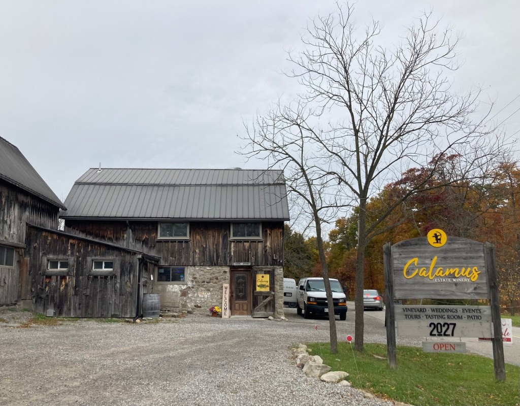 We stopped at one more winery as a research/photo project. That was Calamus Estate Winery. They were hosting a wedding in their barn, but their tasting room was open, so we scoped out the wines to be sold and chatted with the nice host. The winery overlooks the Ball’s Falls Conservation Area, so a couple of their wines have the name Ball’s Falls.