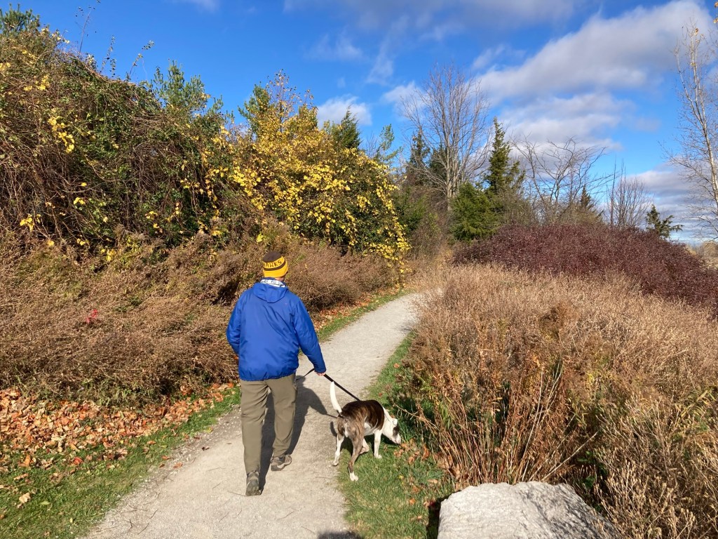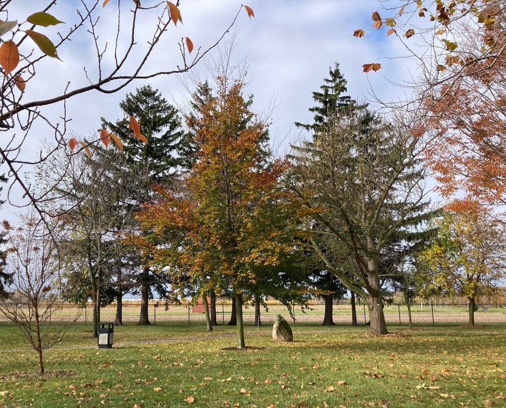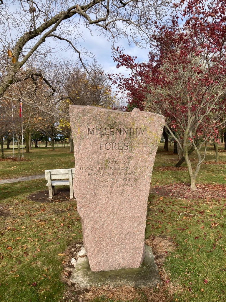 Since Bob and I were wanting to visit a local market, Bob found us a couple of parks/trails to explore with Jack that were in the same direction. We started at Millennium Forest Park in the nearby community of Lincoln, which has a loop walking path through the park as well as 135 different commemorative trees that were planted as part of a Millennium celebration project. The park also had some winged visitors that were pointed out to us by a couple of other walkers when we first arrived.