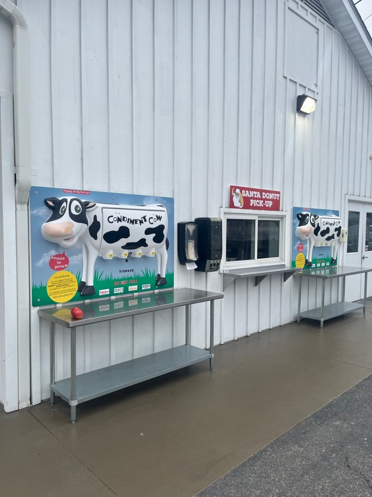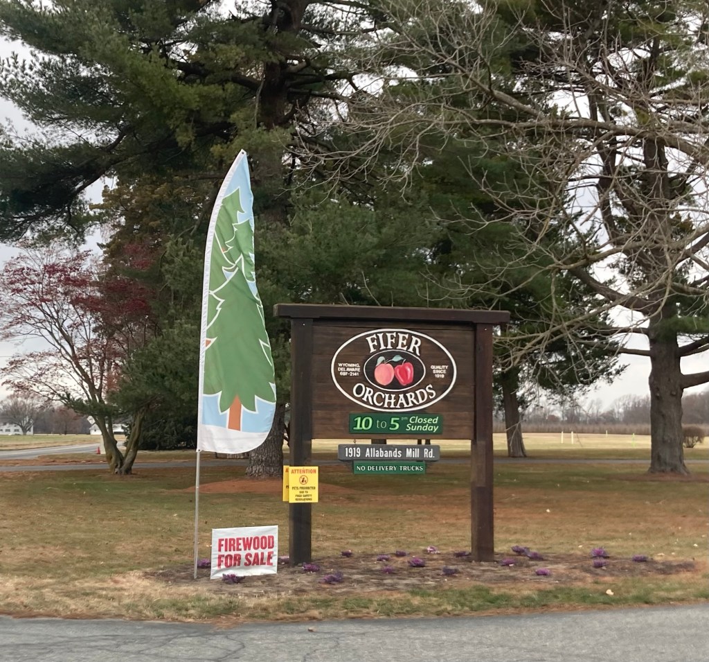 Signage at the road entrance The kitchen, which sells food (burgers,etc) and ice cream, with a separate line for each.A donut pickup window and cute condiment dispensers on the side of the kitchenThe farm store, which sells the farm produce, homemade baked goods, and locally made food products An English Walnut Tree, planted in the 1930s, by the Fifers. On 2/21/19, it measured 56’ in height, a trunk width of 167”, and a crown spread of 99’. It will be listed in the state’s 5th edition of “Big Trees of Delaware” as the second largest English Walnut in the state.