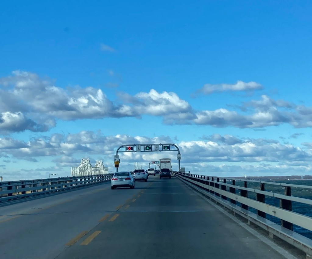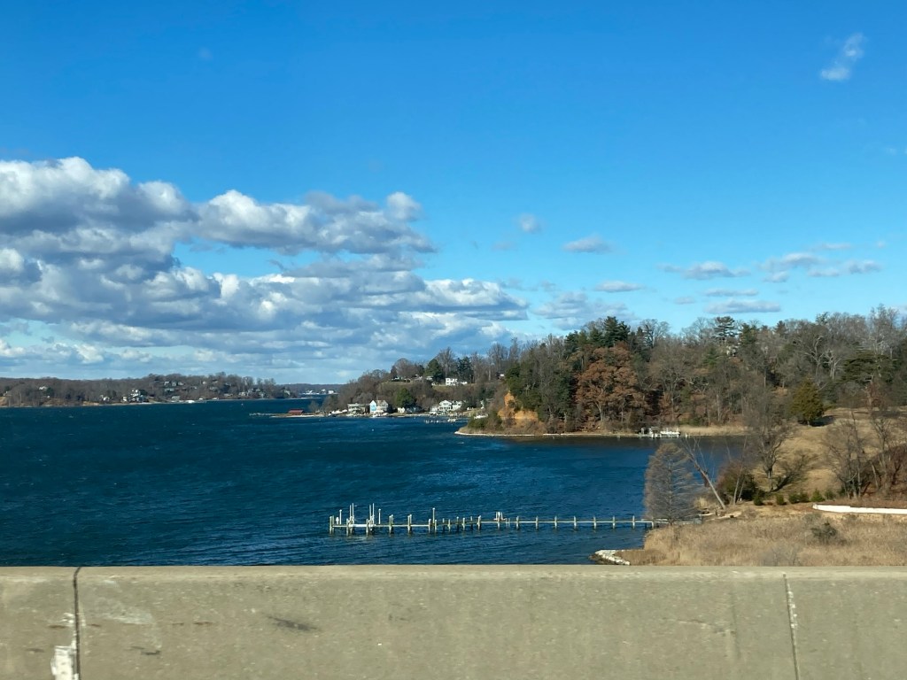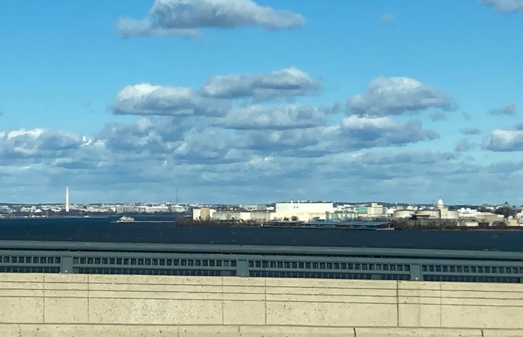 Heading over the 4 mile Bay Bridge over the Chesapeake BayContinuing over the bridgeDittoA tree lined overpassBefore the swamp becomes real, the Washington Monument on the left and the capitol on the rightA glimpse of some of the traffic