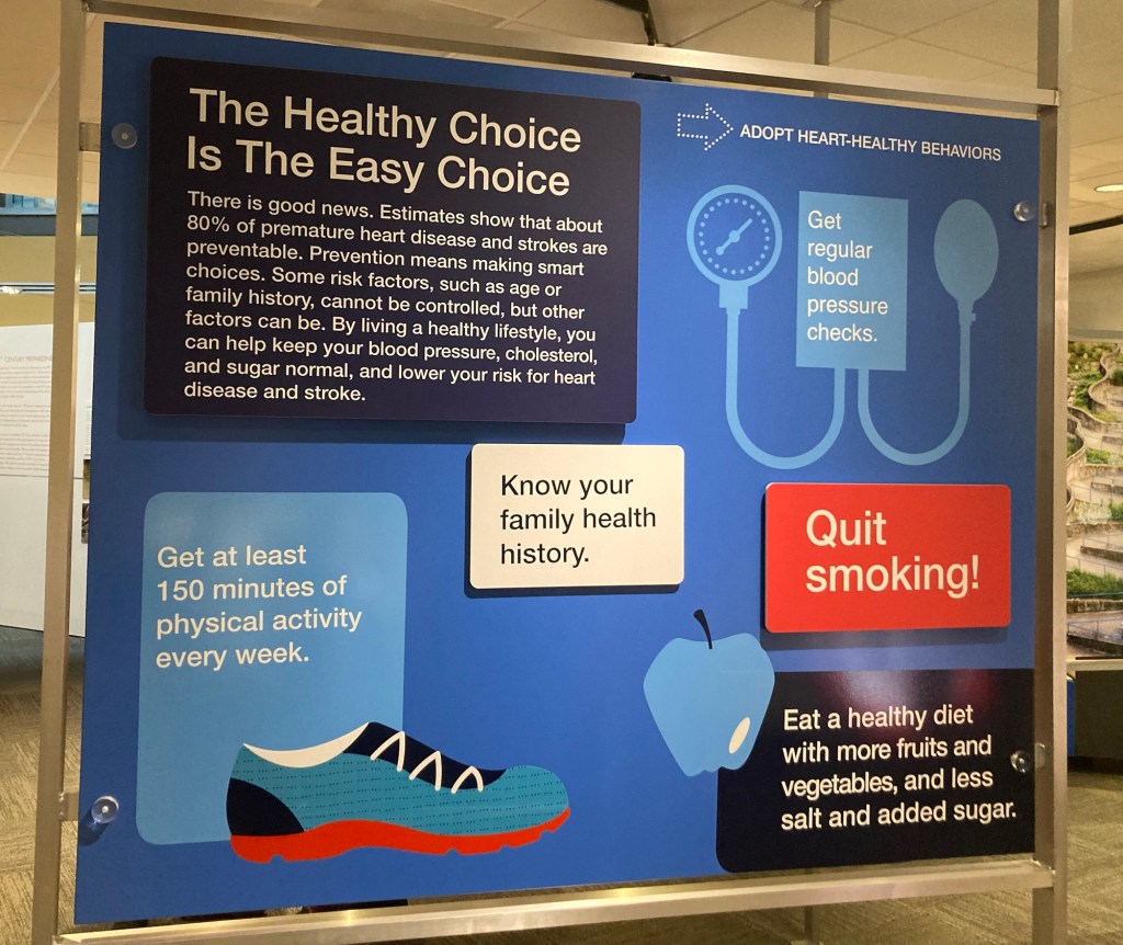 The museum has permanent exhibits on the history of the CDC, the different types of work it undertakes, and then a rotating exhibit. The current rotating exhibit was on Health as a Human Right and Health Disparities. The exhibits are on three levels.