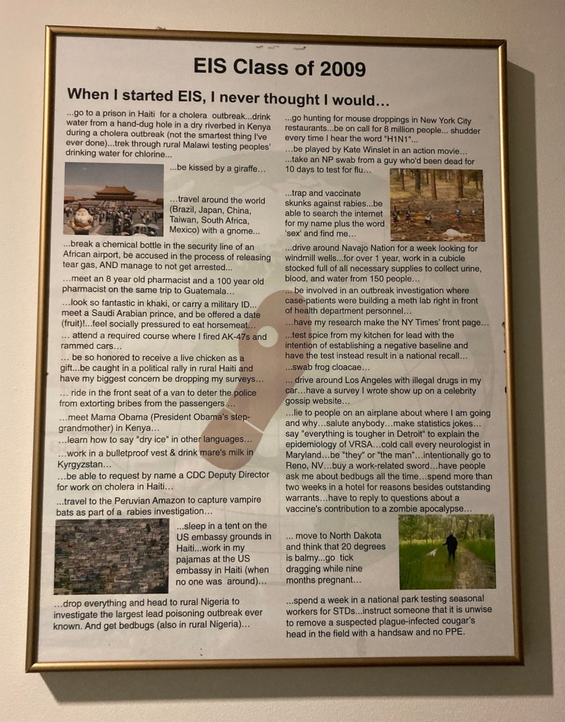 It was really impressive to see the variety of work that they do, and the number of emerging diseases and terrorism events they have had to respond to even since 1946 (polio, Zika, anthrax scares, 9/11, AIDS, Ebola, TB, etc.). They do not get nearly the recognition they deserve for helping address public health needs on an ongoing basis as well as these more major events.