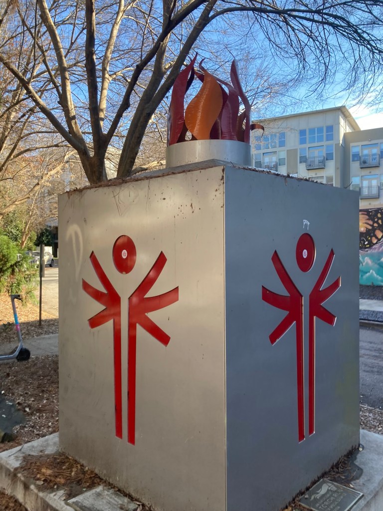 I first walked through the very funky Cabbagetown after leaving the cemetery.Another eclectic neighborhood dining spotMurals on a wallBefore I got to the Carter Center, I walked along the Beltline Trail. This is a monument to the Law Enforcement Torch Run for Special Olympics.Some of the people and offerings left in tribute to our 39th President, who was an honorable President and even better man and humanitarian.