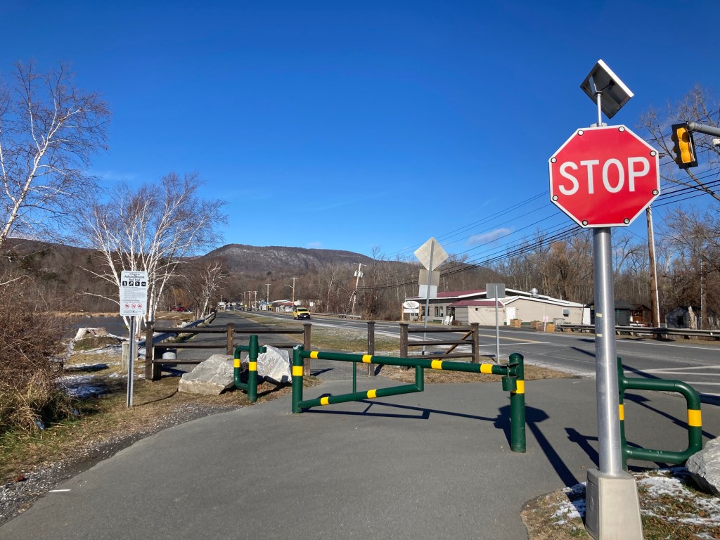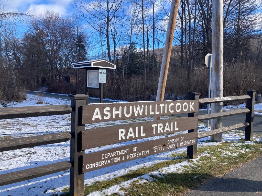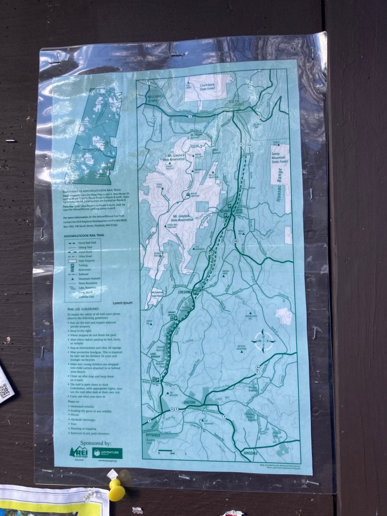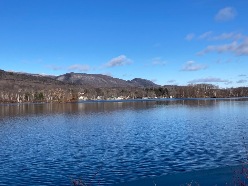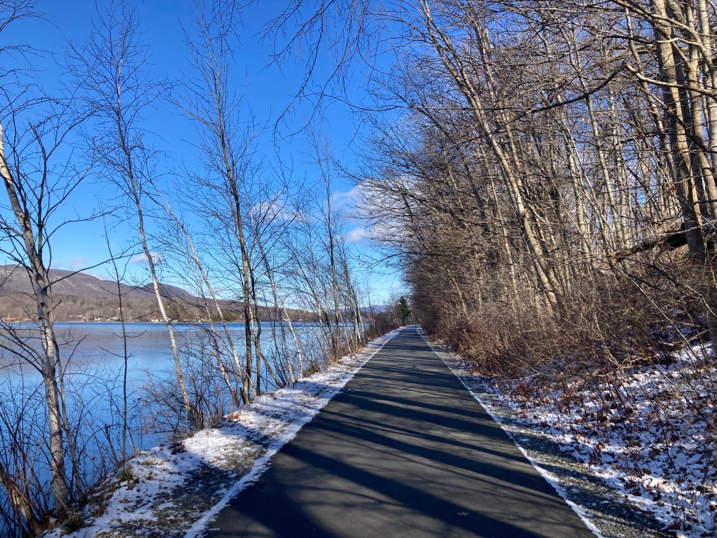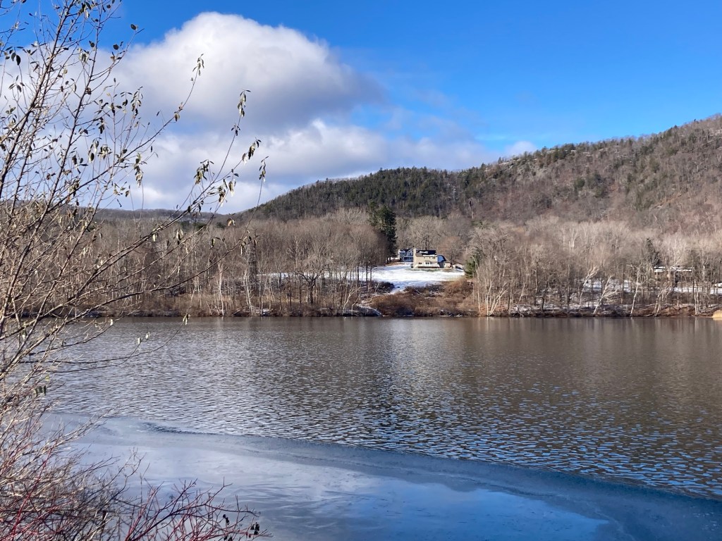 The part of the trail we were on ran alongside the Cheshire Reservoir of the Hoosic River. There appeared to be some cute houses or communities across the reservoir.