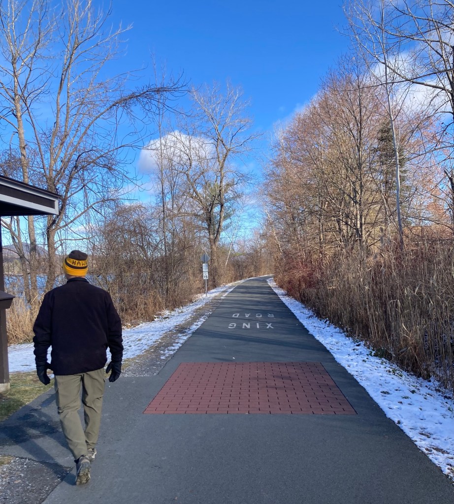Late this morning, Bob and I drove out to a trailhead to walk part of a rail to trail path that he had found. The temp was in the mid 20s F, but it was sunny and the path and trail were beautiful. Here’s the proof.