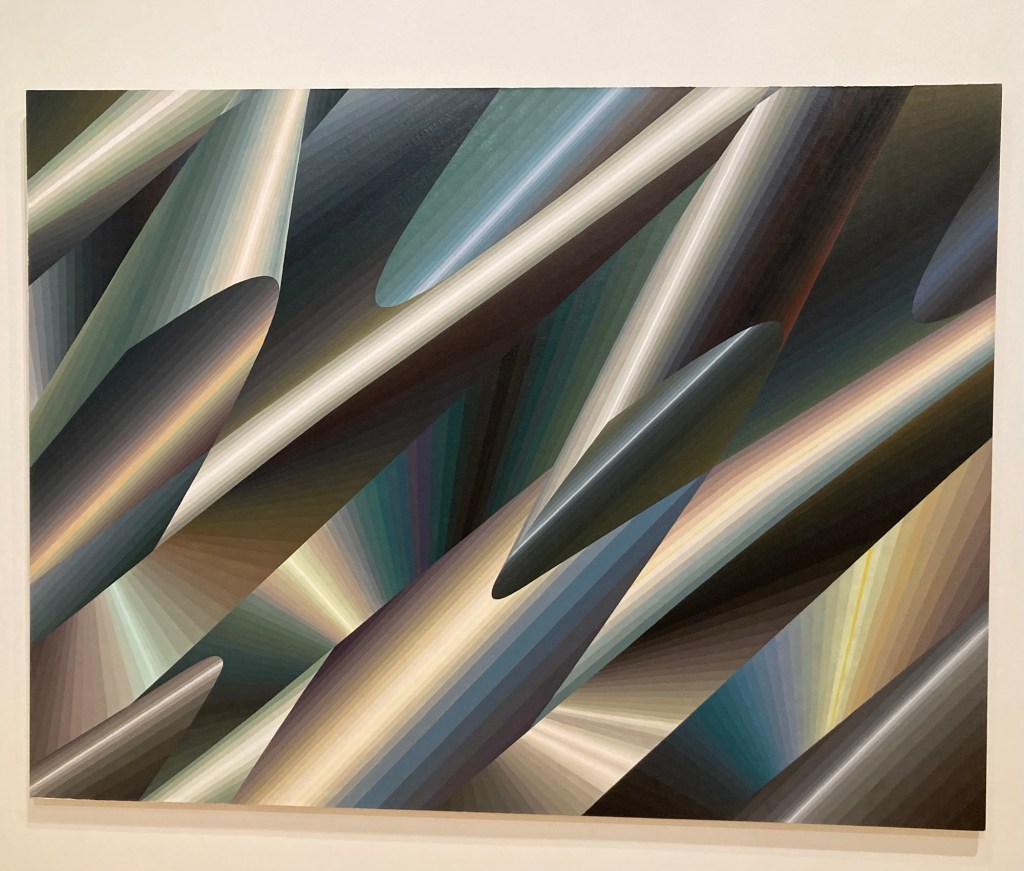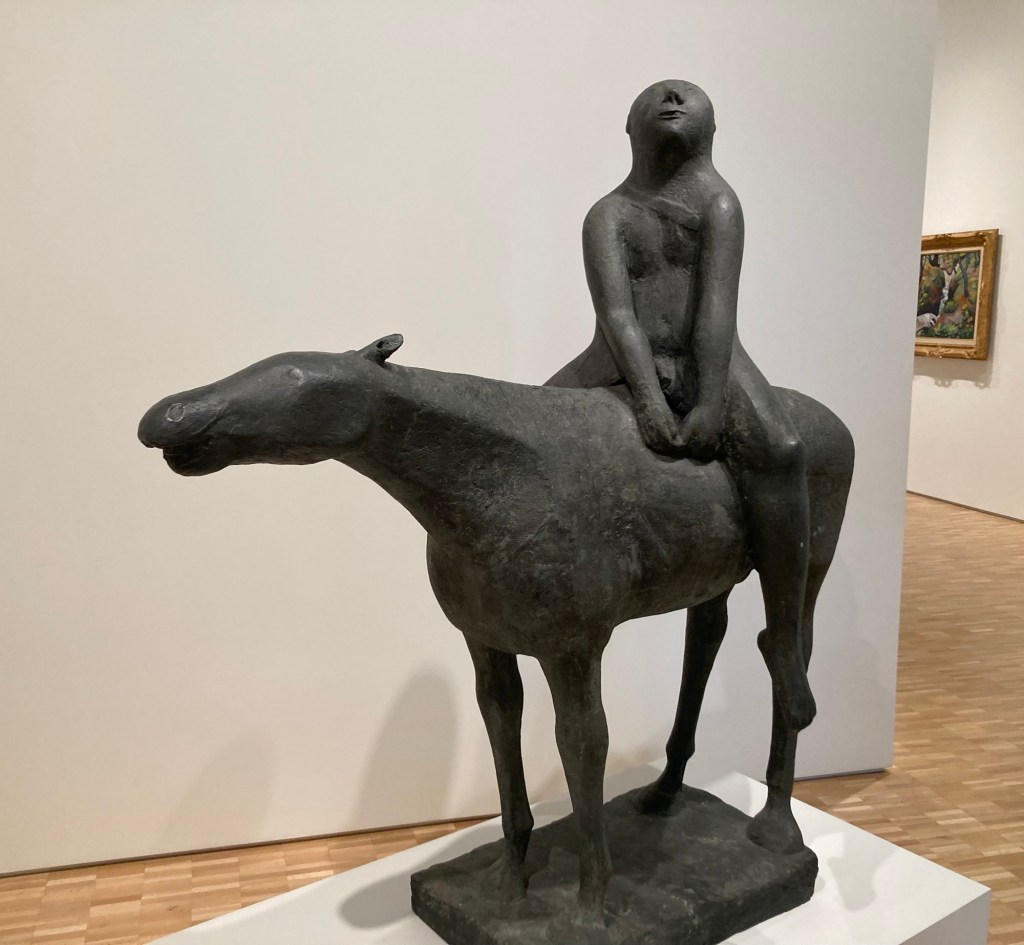 Horseman, 1947, by Marino Marini. It is based on the plight of Italian peasants having to flee their homes during WWII.“Boston Aquarium,” 1973, by Samir Halaby, a Palestinian, who came to the US as a refugee and who earned her MFA at IU.“Swing Landscape,” 1938, by Stuart Davis. It is apparently regarded as one of the masterpieces of 20th century art.