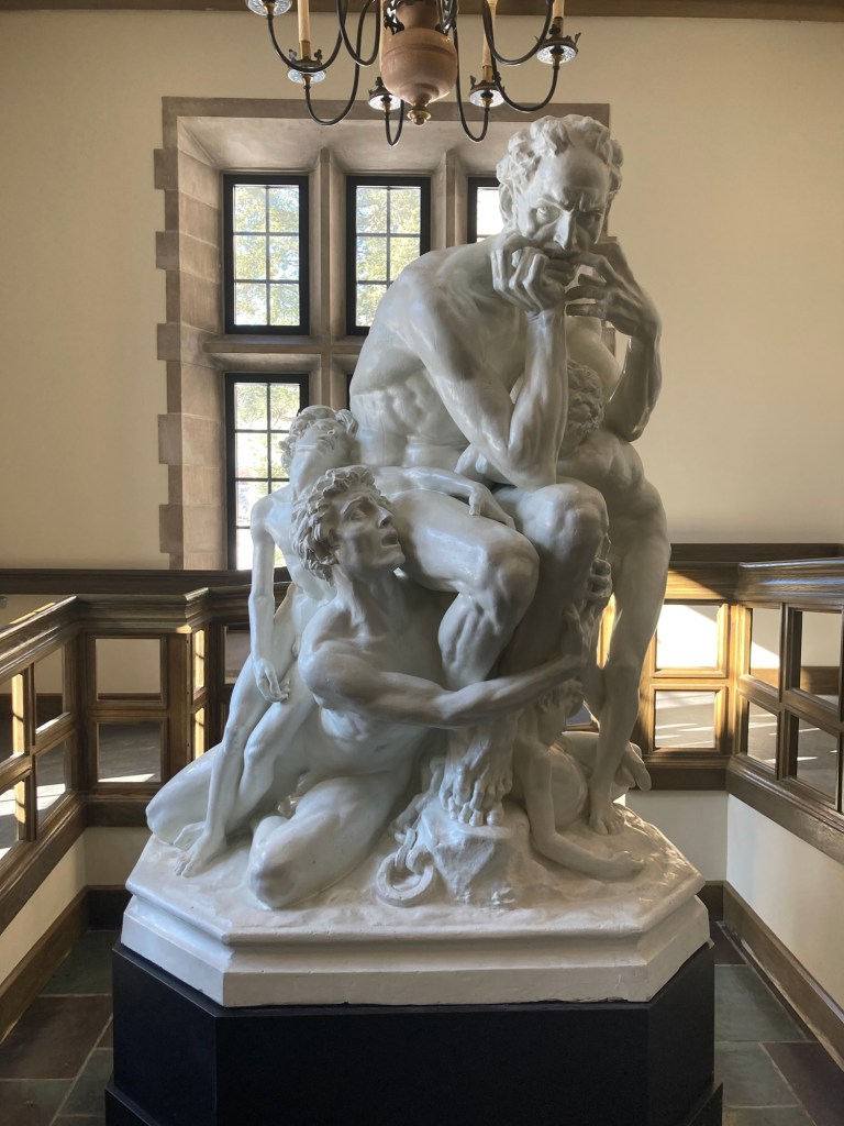 “Ugolino and His Sons,” 1860, by Jean-Baptistery Carpeaux, a gift from the citizens of France for the 700 American box cars of relief goods sent to France in 1948. Each American state received a box car of goods from France.The lobby of the hotel inside the Memorial UnionBeck Chapel