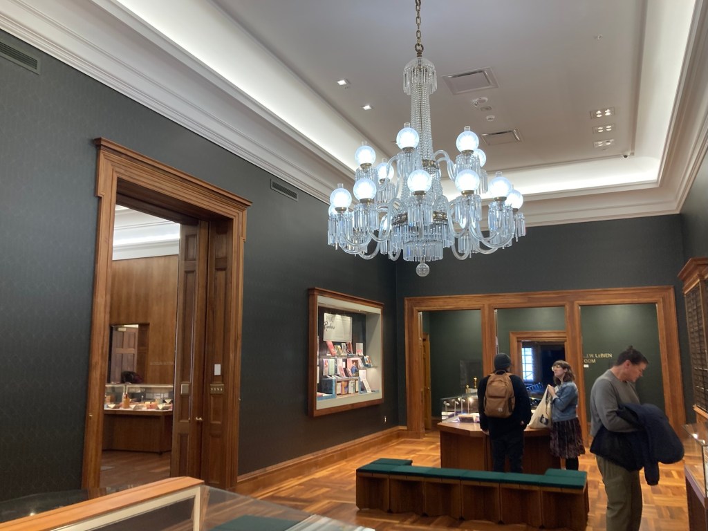 The Lilly Library is named after the Eli Lilly (big pharma) family and the rare gift collection provided by Josiah Kirby Lilly, Jr., which started this collection. I was super excited to visit but was disappointed with the current exhibit on romance, which really didn’t feature many old books.