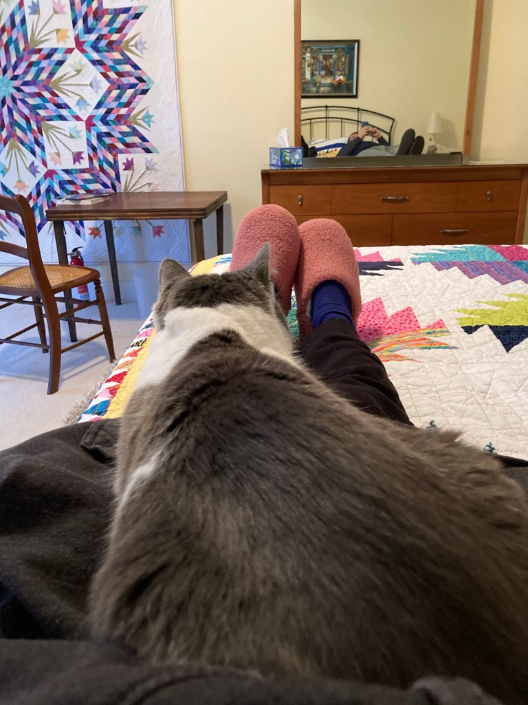 The other upside to this now amusing story is that Jasper finally sat on my lap. It was only about 10 minutes, but since she at most has rubbed up against us, it made me happy.