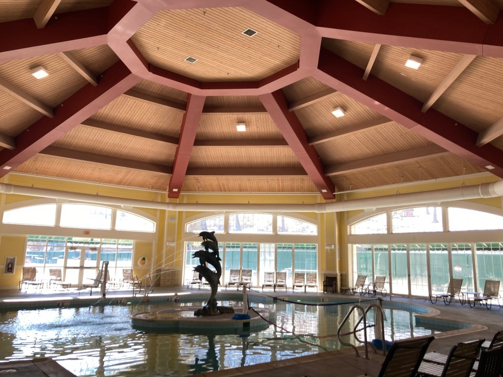 The French Lick Springs HotelThe front veranda, looking towards the casino The impressive lobby/atriumA passage added to the bottom level of the hotel in 2006, converted from a former crawl space to create an access route from the Grande Colonnade buffet and a bar/loungeA bowling alleyA power plant themed bar and grill in the hotelThe grand buffet restaurantThe spa wingThe indoor pool with a dolphin fountain