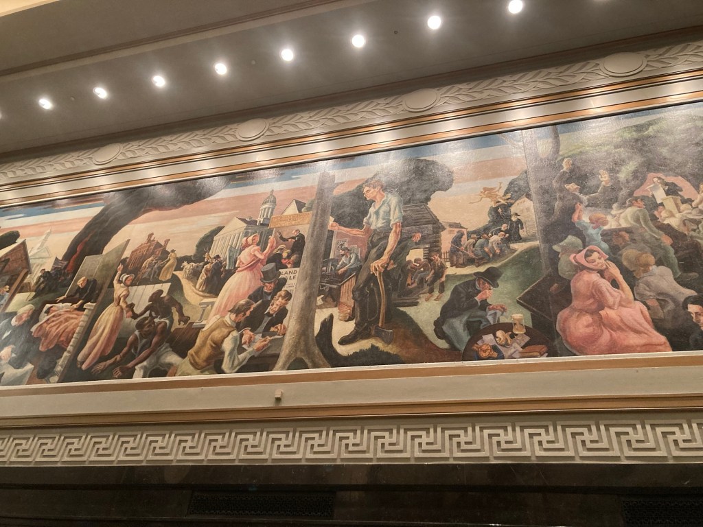 The auditorium was built as a Federal Works Agency project during the Great Depression and completed in 1941. it is also home to Thomas Hart Benson’s “Century of Progress” murals.