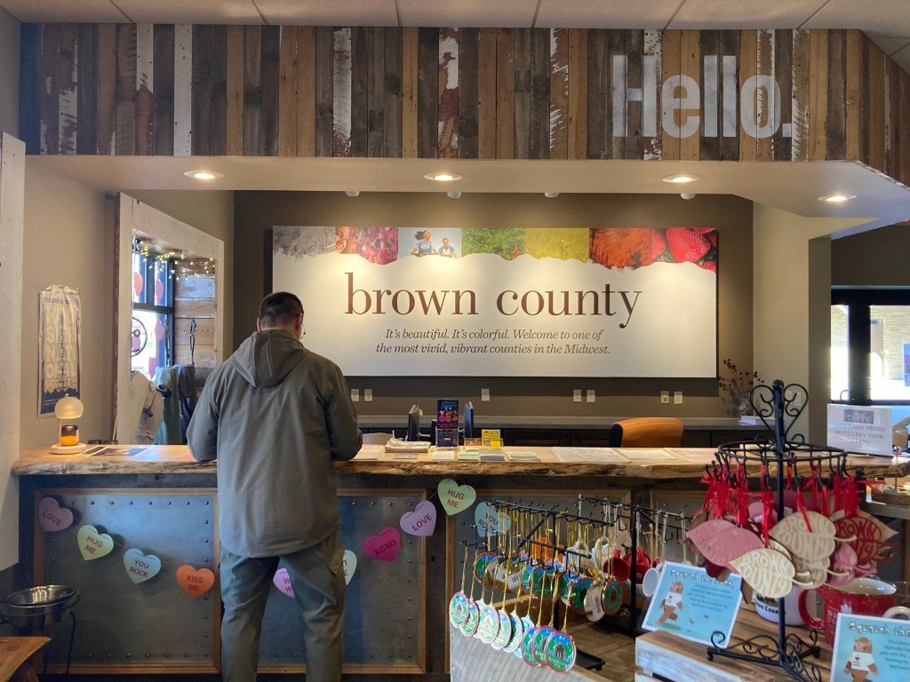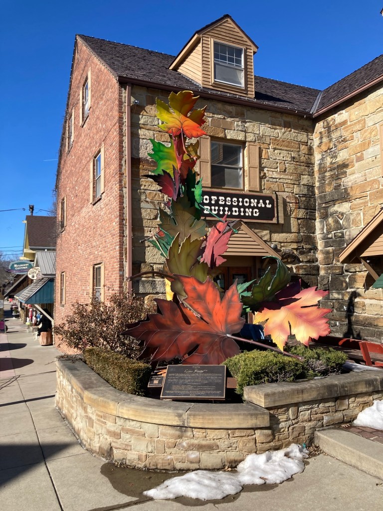 Today, we drove about 25 minutes east of Bloomington to Nashville, Indiana. Nashville has a population of about 1,300, and is best known as the center of the Brown County Art Colony, which formed in 1907. It came to our attention when the local woman who cut my hair a couple of weeks ago mentioned it as a popular tourist spot.