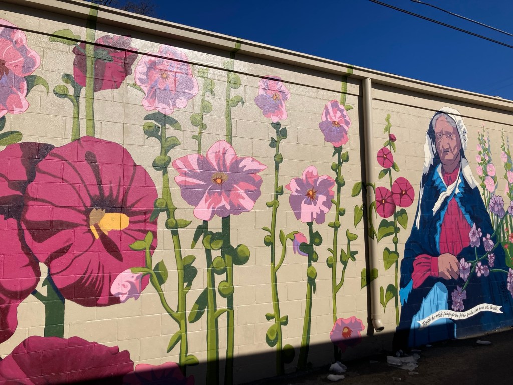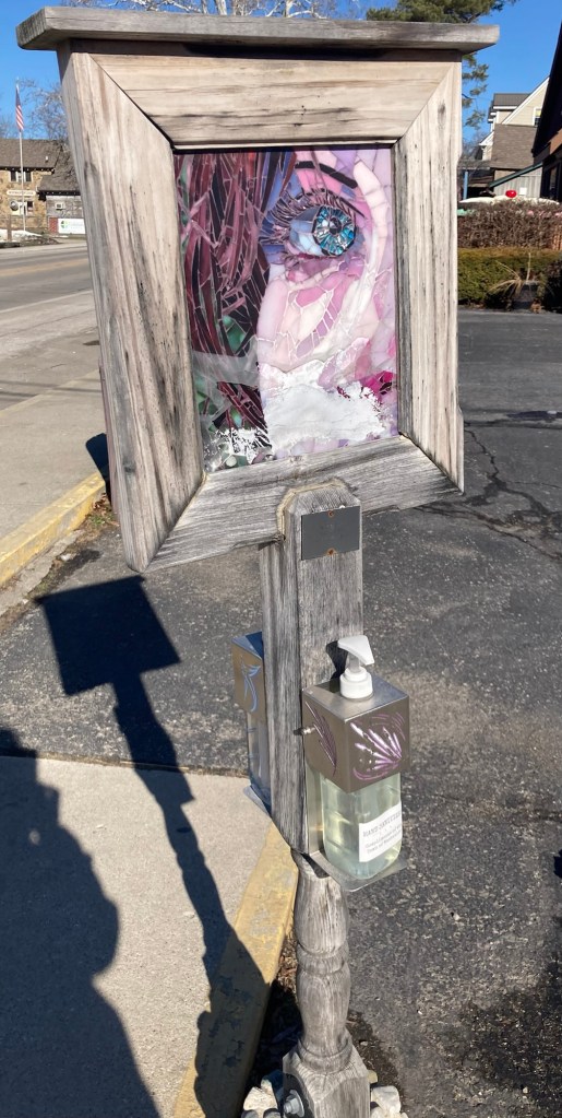 Inside the Visitors CenterThe rear of the Visitors CenterThere were a number of artistic hand sanitizer stations around townLooking down one of the streets One of a number of murals downtown “Soaring” by Elder Heart, 2014A fun entrance to a shopAnother mural