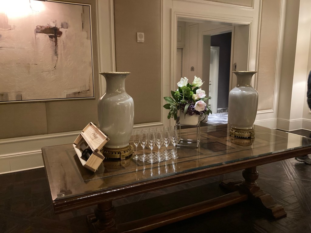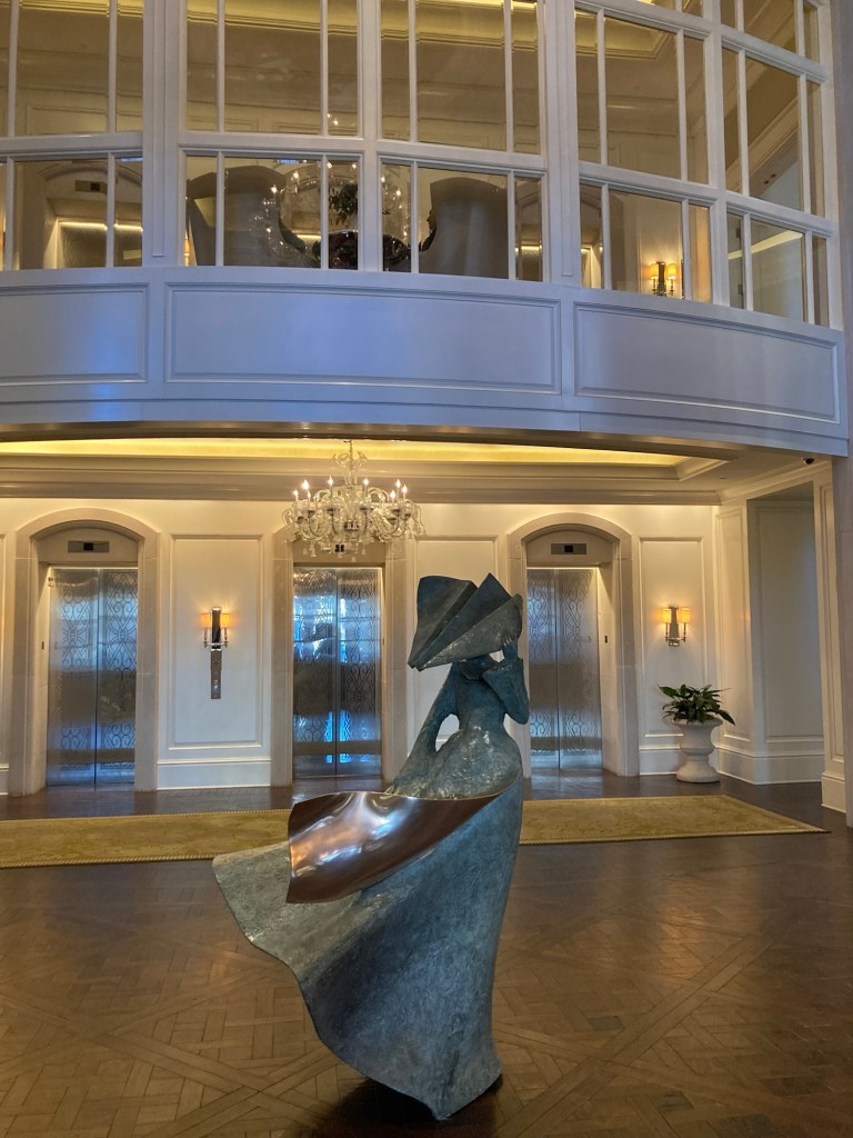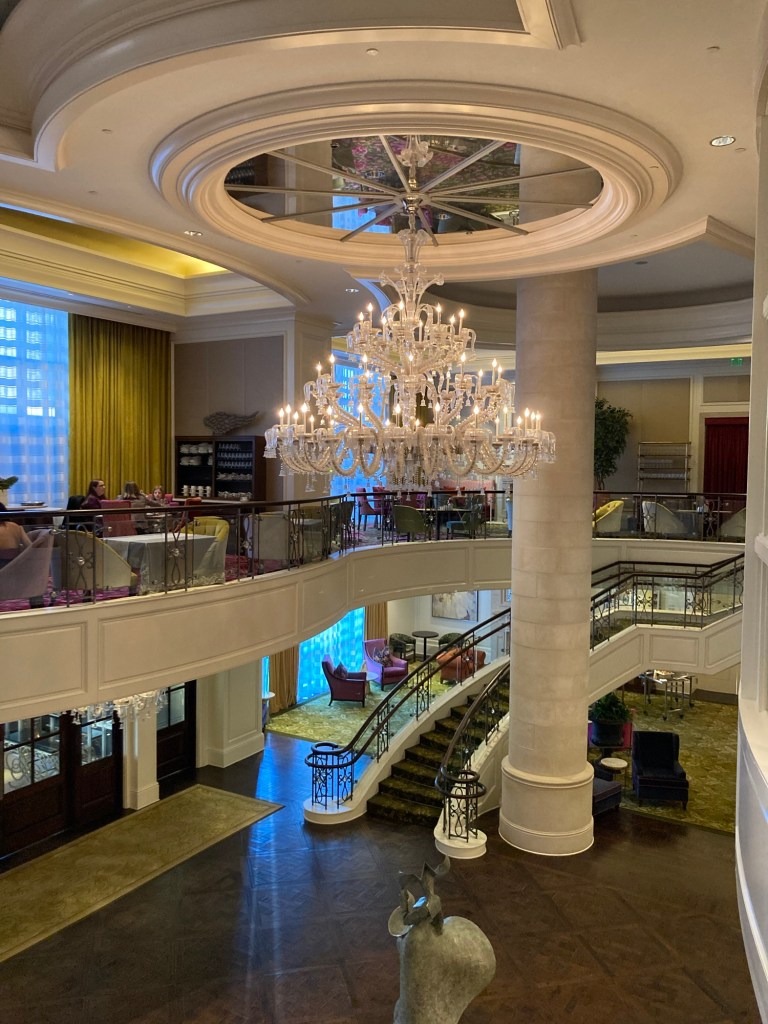I have mentioned Bob’s Marriott Titanium status. Well, he/we had accumulated enough points through our meanderings to earn a free night at a very nice Marriott Hotel. So, we decided to use this at the St. Regis Hotel in the Buckhead section of Atlanta, where rooms were going (the night of our stay) for over $800/night. I don’t know why anyone would pay that, but it was fun to feel rich and special for an afternoon and evening. We were offered (and accepted) a glass of champagne and macarons upon check in. We also chose to get a free breakfast ($80 credit) the next day versus more hotel points.