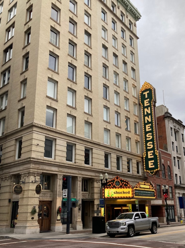 Now, it’s the calm before the winter storm…. We drove three hours to downtown Knoxville, Tennessee and will be here until Tuesday morning. Tonight, rain or snow is to start, so we’re not sure what the next couple of days will bring weather wise. We did a little walk about after our arrival this afternoon to the Marriott Residence Inn.