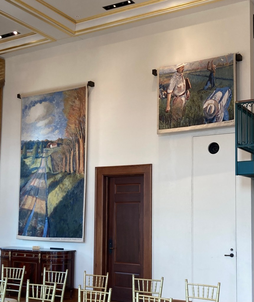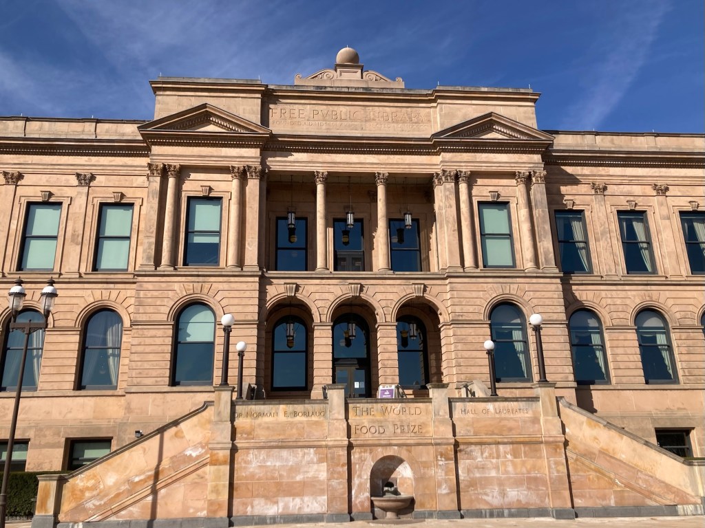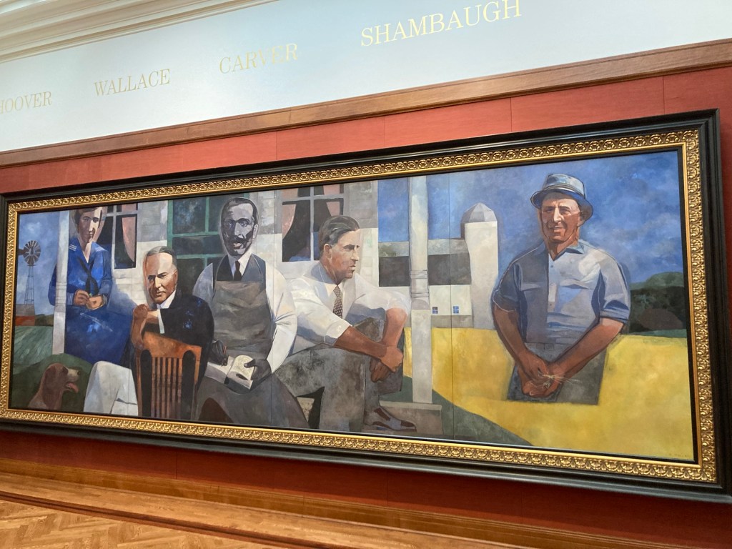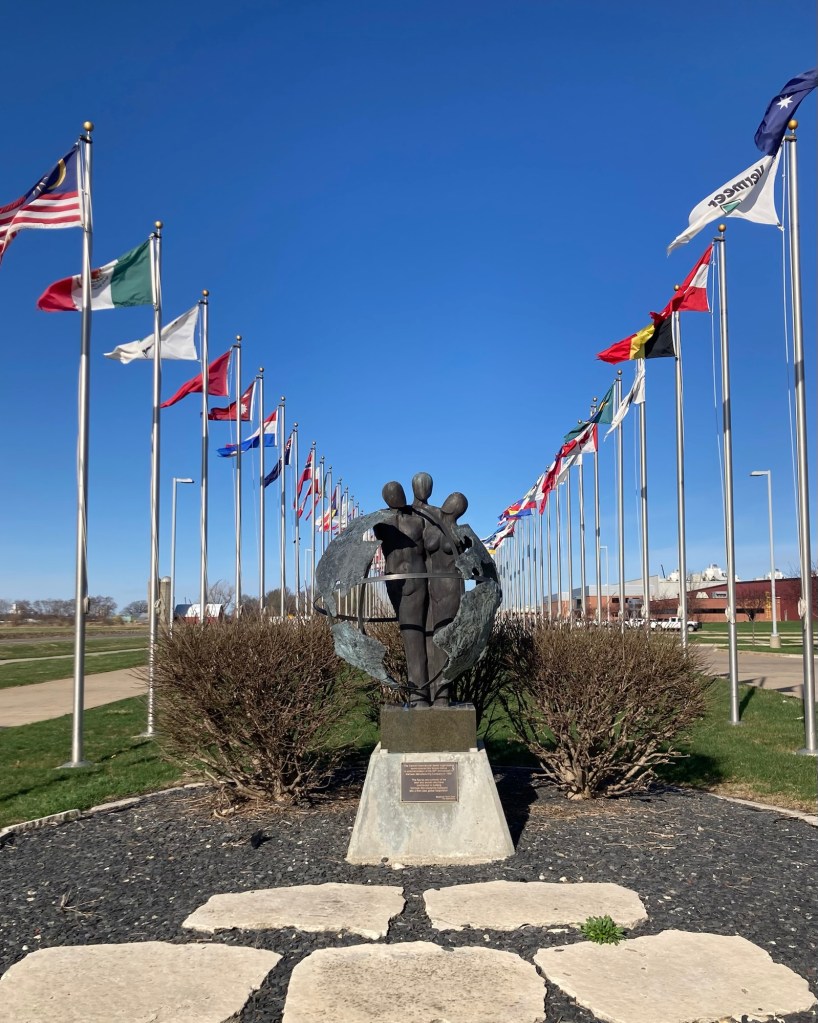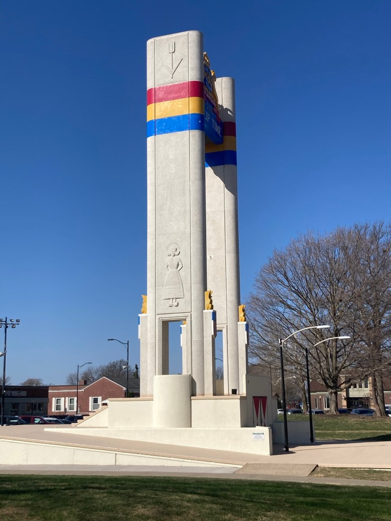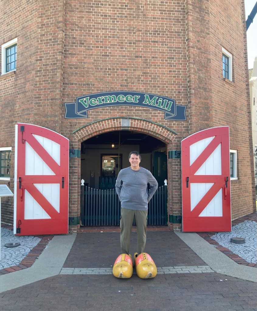 Today we stopped into a museum that we regularly drive by when going between downtown Pella and the house we are watching. It is associated with and on the campus of the Vermeer Corporation. This international manufacturer of agricultural and industrial equipment is headquartered in Pella on a campus known as The Mile. It borders a one mile stretch of road, now named Vermeer Road, starting with Plant 1 and ending at the property where fonder, Gary Vermeer lived and raised his family. The museum is located in the Global Pavilion at the one end of the campus.