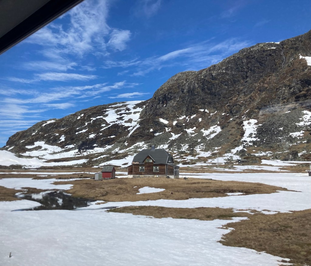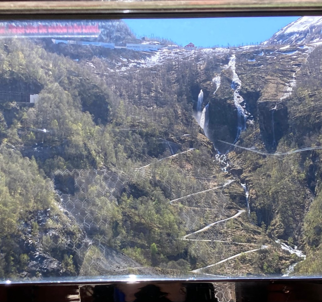 The journey did not disappoint in terms of beauty. We started off seeing cute mountain towns before getting into more rock, snow, and some impressive waterfalls. My apologies for the quality of some of the photos, as they were almost all taken through the train window.