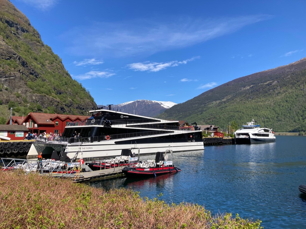 For the trip to Norway, the plan was always to take the train from Oslo to Bergen, as I had heard how scenic it was. Bob found a way to step it up even more. His Rick Steve’s book recommended an excursion called Norway in a Nutshell, which would allow you to see (and sail on) a fjord as part of your journey to Bergen. You could do this in one long day or spend the night at one of the small towns on the fjord and complete the journey the next day. We decided on the latter and are now enjoying an afternoon and evening in the small town of Flam (rhymes with mom) on the Naeroyfjord.