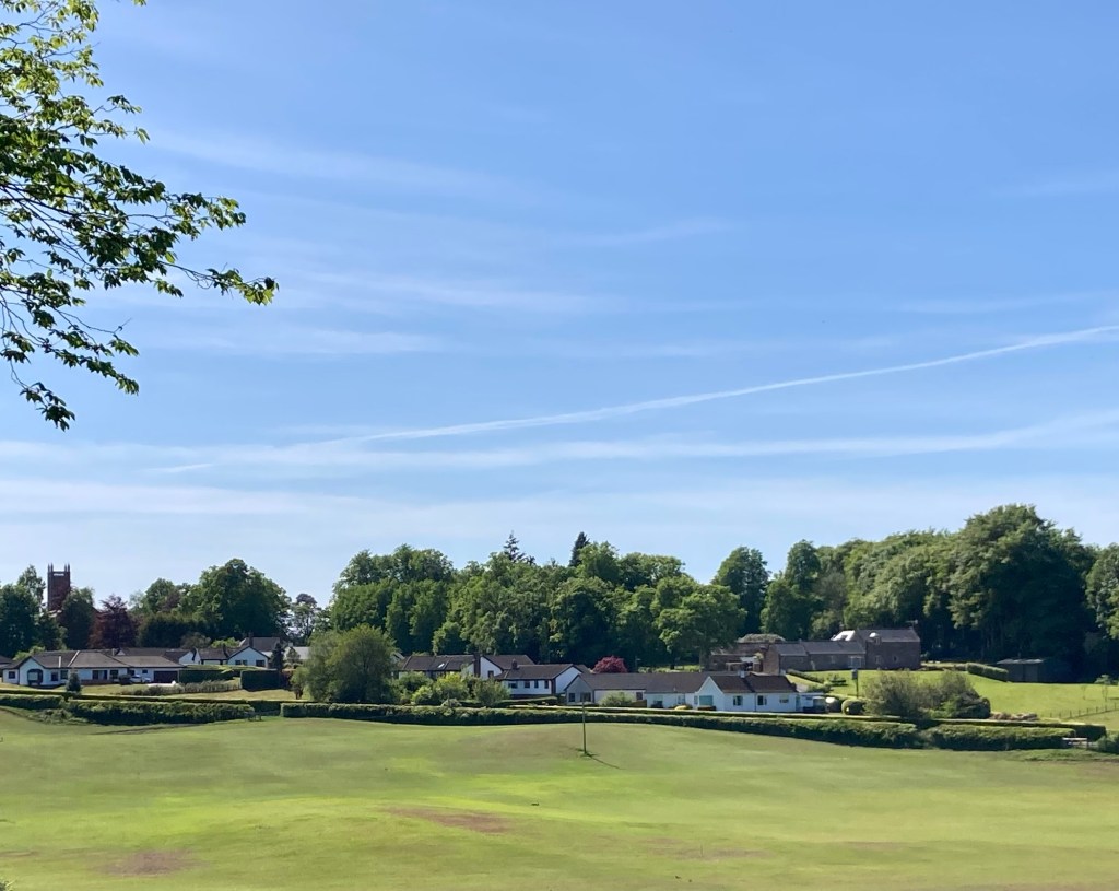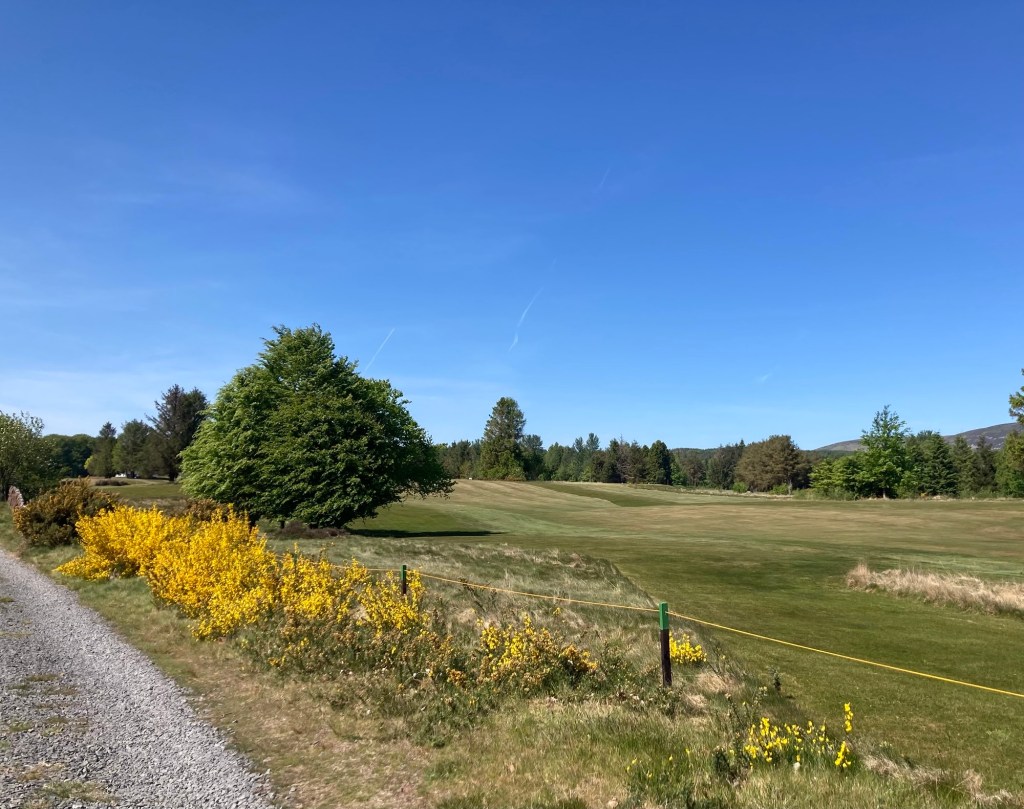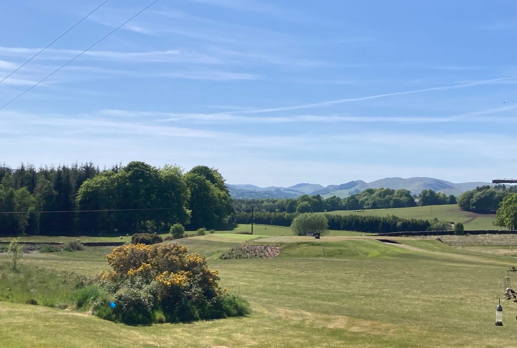 After we returned to Thornhill from lunch, I walked our golf course route that we used to walk when caring for Bruce, Stan and Mary’s former Border Terrier. The views into town and the golf course are amazing.