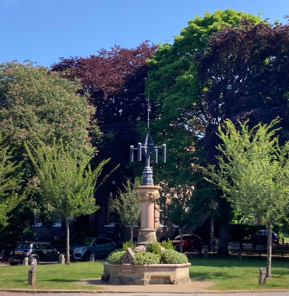 Reading about this beloved local reminded us of our recent stay in Thornhill, Scotland. James Telford came to Cheadle from Dumfriesshire Scotland (where Thornhill is located) in 1871. He drove the red horse-drawn buses of the Manchester Carriage Company for 35 years, often reciting from the works of Robert Burns while he drove! In 1908, he set a British record for driving over 60,000 miles on the route between Manchester and Cheadle! A well-earned statue and happily nothing to do with war!