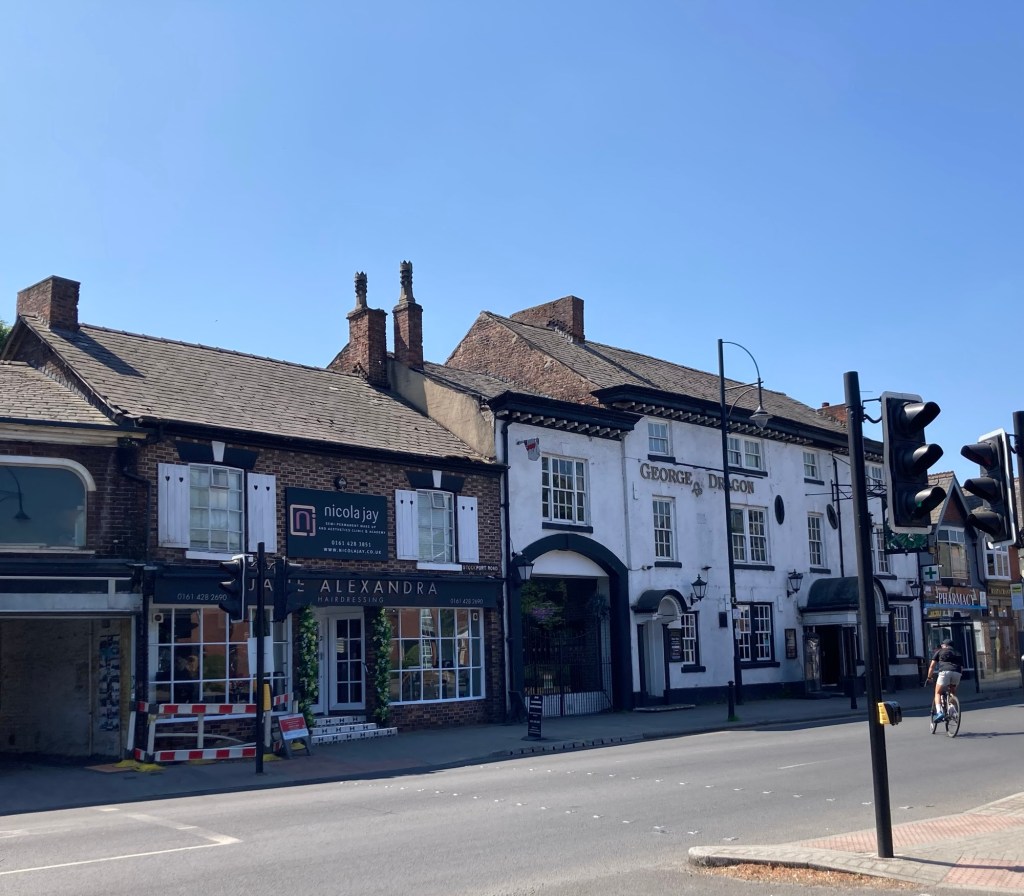 That is the route we took yesterday to start our short walkabout in the business district of Cheadle Hulme.